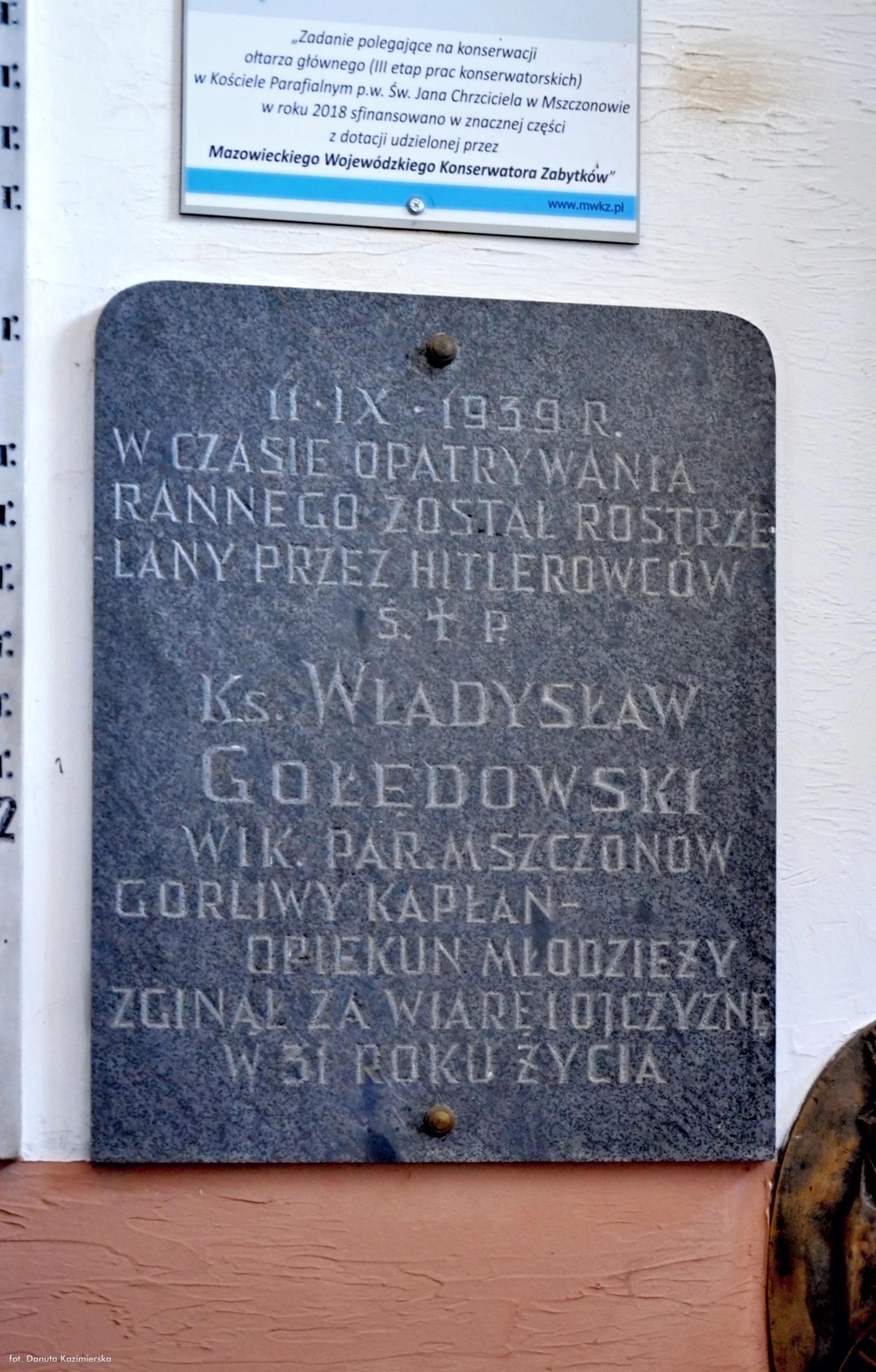 14 maja 2023 , Tablica na elewacji kościoła upamiętniająca ks. Władysława Gołędowskiego.Skomentuj zdjęcie |