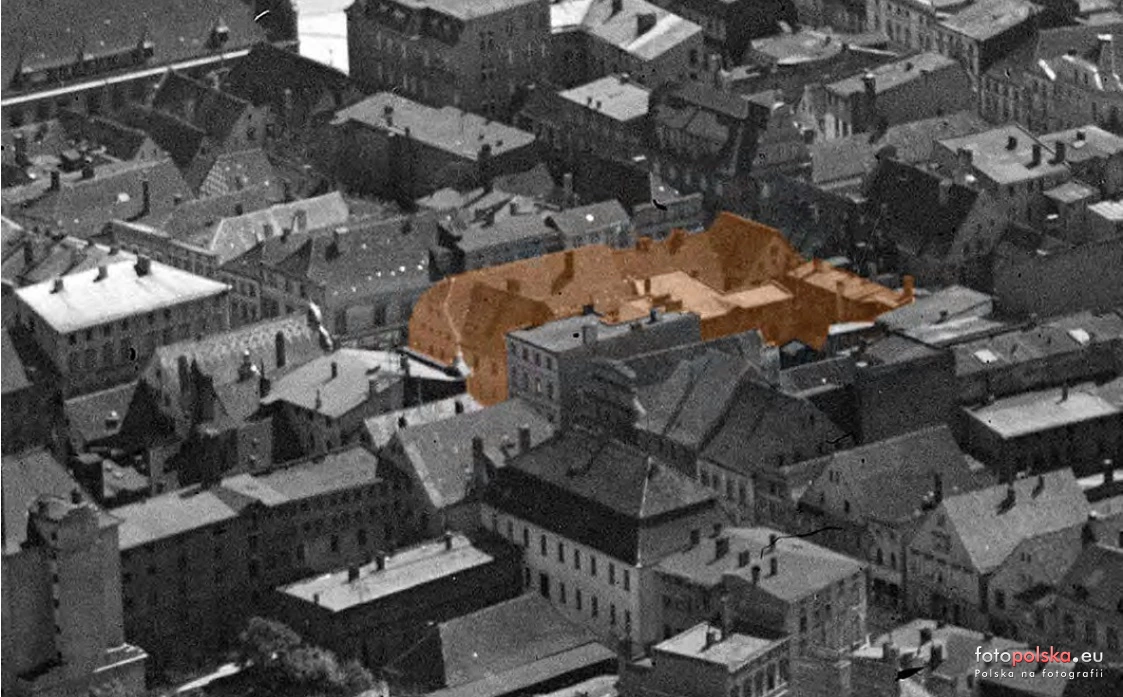 Lata 1930-1935 , Fragment zabudowy Starego Miasta z zaznaczonymi parcelami Targ Drzewny 19, 20, 21. Widok od NE.Skomentuj zdjęcie |