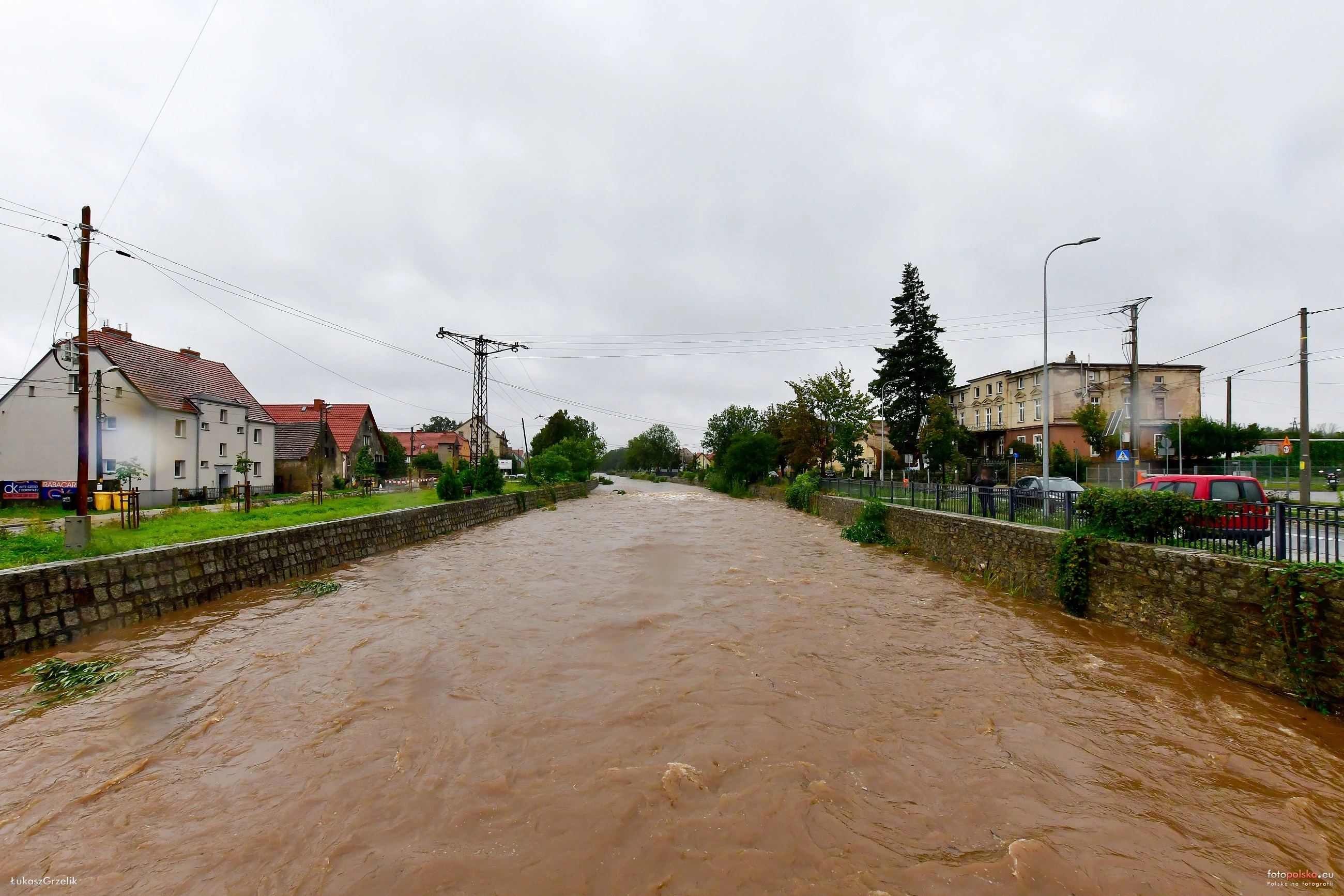 15 września 2024 , Widok na rzekę Strzegomkę oraz ul. Brzegową i Dolną podczas powodzi w 2024 roku.Skomentuj zdjęcie |