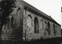 Kosciół filialny Niepokalanego Poczęcia NMP więcej zdjęć (11) Zbudowano: XIII w. Zabytek: 158 z 01.08.1956; A-981 z 01.12.2011 Historia: - Kościół wzniesiono w drugiej połowie XIII wieku. - Na przełomie XV i XVI wieku od zachodu dobudowano wieżę. - Po roku 1945 świątynia nie była użytkowana i powoli popadała w ruinę. - w roku 1987 kościół odbudowano i stopniowo uposażano, poświęcono go 7 grudnia 1991 roku. Architektura: Kościół wybudowany został po południowej stronie nawsia, nad centralnie położonym stawem. Była to początkowo budowla salowa, orientowana, o planie prostokąta bez wyodrębnionego prezbiterium i wieży zachodniej. Zachowaną do dziś podstawę wieży wykonano w późniejszym okresie. Mury świątyni posadowione na kamiennym fundamencie i fazowanej warstwie cokołowej, wzniesione są z dokładnie obrobionych kwadr granitowych łączonych zaprawą wapienną, ułożonych w regularne warstwy. W elewacji wschodniej znajduje się triada okien tej samej wysokości o mocno rozglifionych obustronnie ościeżach, wykonanych z klińców granitowych i skośnych parapetach. Ostrołukowe zamknięcie wykonano wtórnie w cegle. Po obu stronach okien i w szczycie znajduja się duże, półokrągło zamknięte blendy o kamiennym obramowaniu. Szczyt wymurowano z mniej dokładnie obrobionych kamieni. Elewacje ścian północnej i południowej były rozplanowane niemal identycznie. Znajdowały się w nich wąskie okna o kamiennych, mocno rozglifionych i ostrołukowo zamkniętych ościeżach oraz skośnych parapetach. Pomiędzy oknami znajdowały się duże blendy o wykroju identycznym jak w elewacji wschodniej. Wyjątkiem była przestrzeń nad portalem północnym zdobiona dwiema blendami o półokrągłym zamknięciu oraz jedną okrągłą nad łukiem archiwolty. Ustalenie dokładnej liczby okien i blend oraz ich rozplanowanie jest bardzo trudne z powodu późniejszych przemurowań. Niewątpliwie najciekawszym fragmentem tych elewacji jest portal północny. Niestety, jego ościeża są obecnie w części uszkodzone i zamurowane. Zapewne jest to portal dwuuskokowy wykonany z doskonale obrobionych i spasowanych kwadr i klińców granitowych. Partia archiwolty została wyodrębniona przez zastosowanie płaskich płyt wysuniętych przed lico ościeży. Na czole zachowanej płyty widoczny jest delikatny relief. Ostrołukowa archiwolta posiada ponadto dodatkowy pas kwadr, stanowiących zewnętrzne ościeże. Zaskakujący jest fakt, iż kwadry tworzące ten wieniec posiadają wykute obustronnie holkiele z dwunastoma guzami zwróconymi na zewnątrz ościeża. Krawędź ościeża archiwolty posiada wykuty wałek. Czy krawędź drugiego uskoku posiada holkiel, tego na razie nie udało się ustalić. Portal ten ma bardzo wiele analogii do portalu kościoła w Plöwen. Drugi portal znajdował się zapewne w elewacji zachodniej przesłoniętej obecnie bryłą dolnej kondygnacji wieży. Czy znajduje się on tam obecnie, tego nie udało mi się ustalić? Nie wiadomo również jak wyglądał szczyt zachodni przed wybudowaniem wieży. Dolna kondygnacja wieży o tej samej szerokości co nawa, wzniesiona została na planie prostokąta z nieobrobionych głazów narzutowych i cegły w narożach. Wyższa kondygnacja posiadała konstrukcję szkieletową, odeskowaną, osadzoną w więźbie dachowej o rozbudowanym zakończeniu i stożkowym hełmie. Rzut zamieszczony w inwentaryzacji niemieckiej wskazuje na istnienie w elewacji zachodniej podstawy wieży, portalu uskokowego, który nie zachował się do dzisiaj. Obecne wejście o prostych, ceglanych ościeżach, zwieńczone jest łukiem odcinkowym i powstało w trakcie odbudowy kościoła. Wnętrze kościoła przykryte jest płaskim stropem belkowanym i dwuspadowym, jednopołaciowym dachem ceramicznym. Wokół świątyni zachowała się część kamiennego muru z bramką późnogotycką od północy, wyznaczającego prostokątną parcelę, na której znajdował się cmentarz. Źródło: |