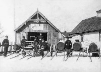 Lata 1931-1935 , Strażacy OSP pozujący przed remizą.Skomentuj zdjęcie |