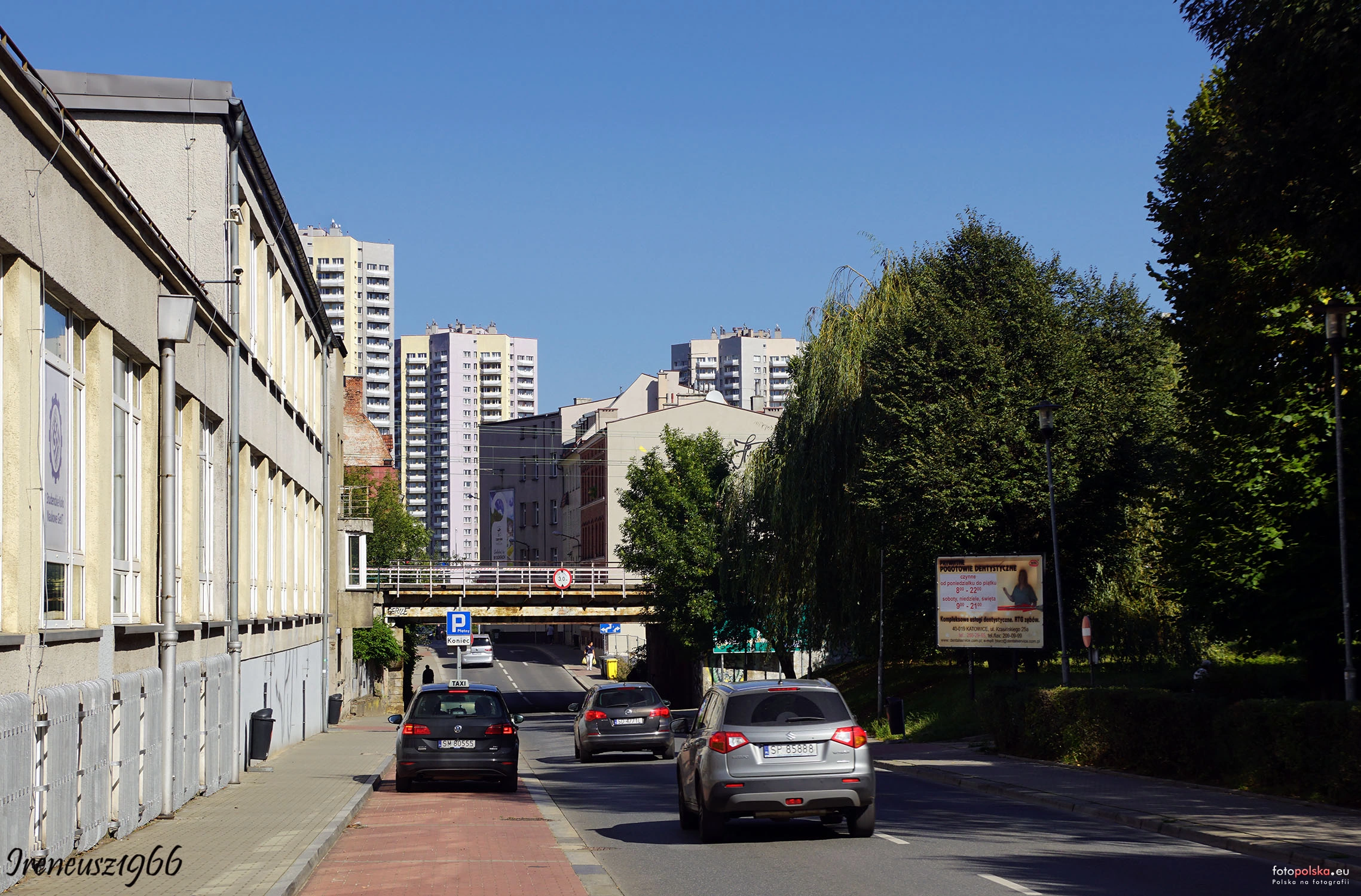 1 pobranie 322 odsłony 6 średnia ocen Poprzednie i następne zdjęcia ireneusz1966 Obiekty widoczne na zdjęciu ul. Graniczna więcej zdjęć (354) Dawniej: Freiligrathstraße Ulica Graniczna w Katowicach − jedna z ulic w katowickim Śródmieściu, łącząca je z dzielnicą Osiedle Paderewskiego-Muchowiec. Ulica wzięła swoją nazwę od dawnej granicy między Katowicami a gminą Bogucice, przebiegającej w tym miejscu. W dwudziestoleciu międzywojennym przy ulicy działała oczyszczalnia ścieków, działająca według systemu Majchra. W okresie niemieckiej okupacji Polski w latach 1939−1945 ulica nosiła nazwę Freiligrathstraße. Ulica rozpoczyna swój bieg od skrzyżowania z ul. Warszawską, ul. 1 Maja i ul. Jerzego Dudy-Gracza (dojazd do al. W. Roździeńskiego). Dalej biegnie pod wiaduktem kolejowym, krzyżuje się z ul. Zygmunta Krasińskiego, ul. Przemysłową, ul. Sikorskiego i ul. Powstańców. Przy skrzyżowaniu znajduje się stacja Wojewódzkiego Pogotowia Ratunkowego, pl. Rady Europy, pl. Żołnierza Polskiego z pomnikiem. Za skrzyżowaniem z ul. Ofiar Katynia kończy swój bieg (przy ul. K. Pułaskiego). W budynku Gimnazjum nr 5 przy ul. Granicznej 27 znajduje się ściana pamięci Pawła Stellera. Przy ulicy Granicznej znajdują się: budynek dawnego Śląskiego Instytutu Naukowego, Kościół Wniebowzięcia NMP, Centrum Handlowe Belg, Wojewódzki Ośrodek Dokumentacji Geodezyjnej i Kartograficznej, Gimnazjum nr 5, oddział Państwowej Inspekcji Pracy (Okręgowy Inspektorat Pracy), Zespół Szkół Zakładu Doskonalenia Zawodowego, Niepubliczne Przedszkole Wesołe Siódemki, Miejskie Przedszkole nr 87, Przedsiębiorstwo Budowlane Katowice, Zgromadzenie zakonne Sióstr Misjonarek Miłości, Izba Gospodarcza Metali Nieżelaznych i Recyclingu, Bipromet (polskie przedsiębiorstwo budowlane, notowane na Giełdzie Papierów Wartościowych w Warszawie) oraz Medyczne Studium Zawodowe. Kościół i klasztor sióstr Maryi Niepokalanej (ul. Z. Krasińskiego 21, róg z ul. Graniczną) został objęty ochroną konserwatorską. Przy ul. Granicznej 12 znajdują się historyczne budynki zaplecza Politechniki Śląskiej, a pod numerami 6 (róg z ul. Warszawską 66), 11, 13 − historyczne kamienice mieszkalne. Ulicą Graniczną kursują autobusy KZK GOP. Dnia 3 sierpnia 2010 ulicą prowadziła trasa trzeciego etapu wyścigu kolarskiego Tour de Pologne 2010, a 2 sierpnia 2011 − trasa trzeciego etapu Tour de Pologne 2011. |