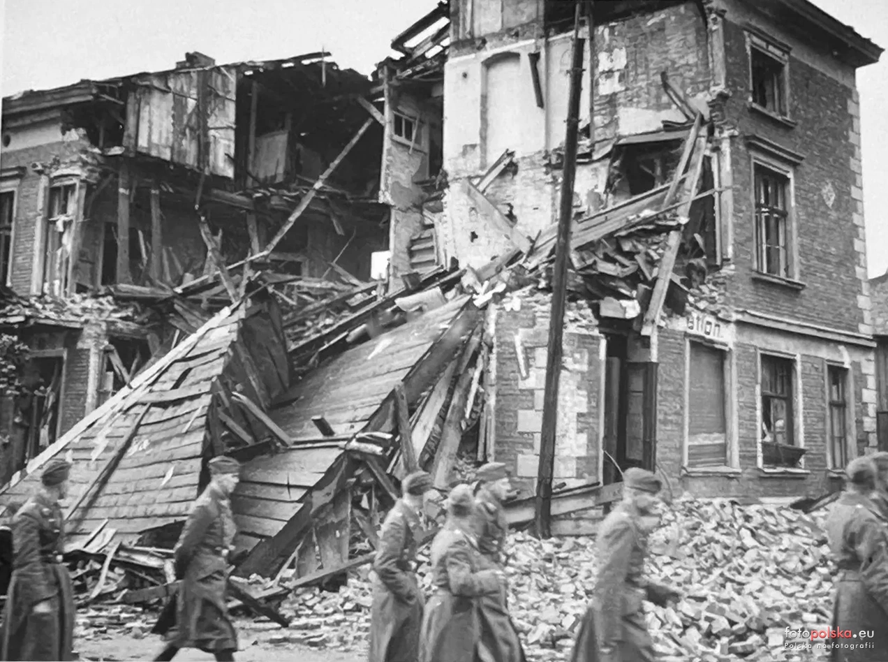 1939 , Zniszczony przez niemiecki ostrzał Westerplatte budynek Domu Marynarza.Skomentuj zdjęcie