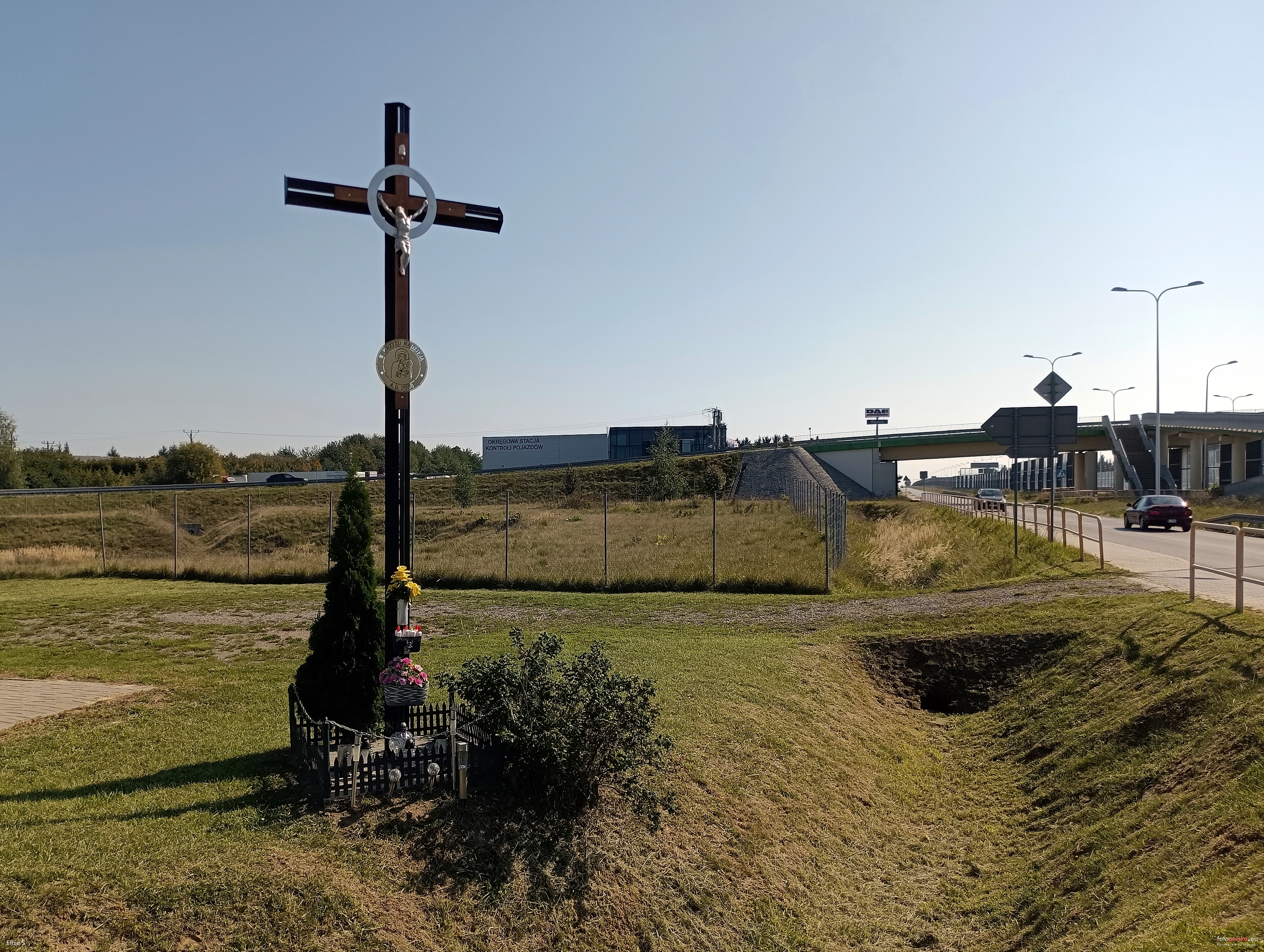 21 września 2024 , Krzyz przydrożny przy Alei Lotników Polskich, z prawej w głębi kadru wiadukt (Świdnik/Kalinówka) nad ul. Piasecką.Skomentuj zdjęcie |
