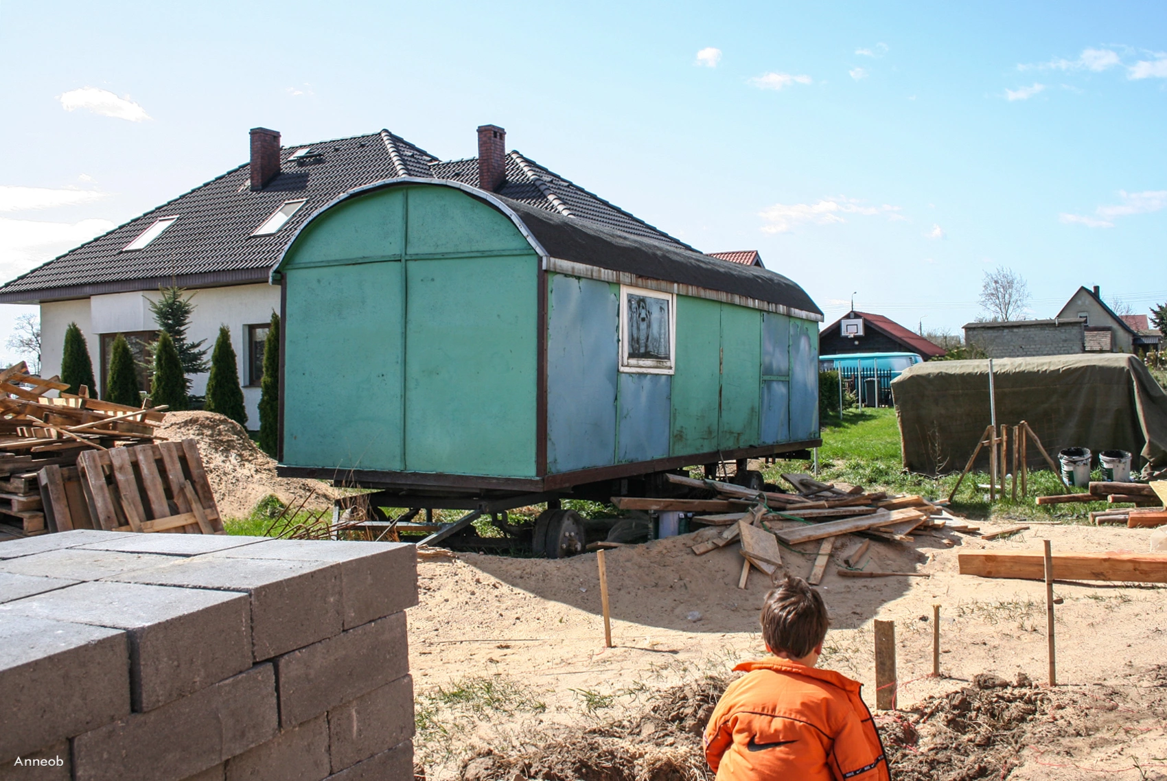 10 kwietnia 2011 , Posesja Ziołowa 2 z tymczasowym barakiem. Po lewej, budynek Akacjowa 3.Skomentuj zdjęcie |