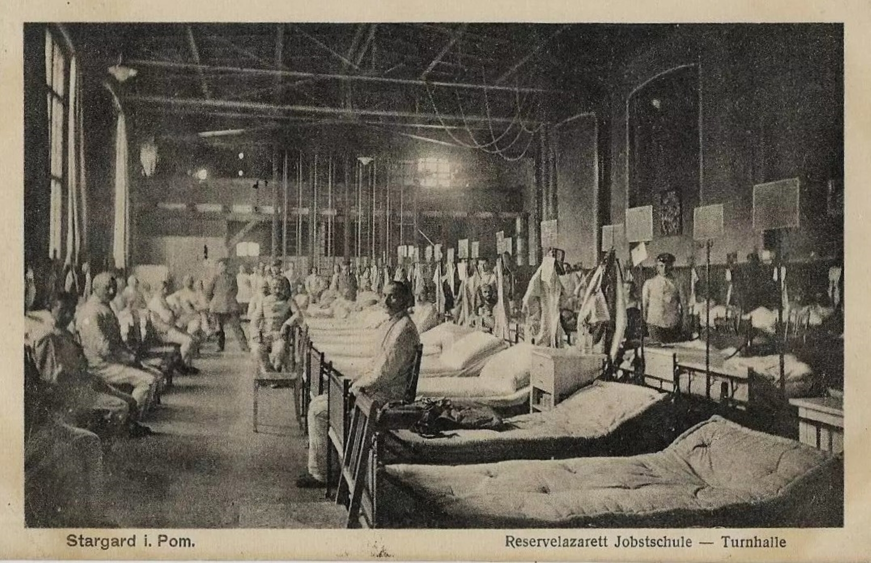 Lata 1916-1918 , Szpital wojskowy w sali gimnastycznej dawnej Jobstschule w czasie IWŚ . Do ok. 2000 r. była też wspólną salą dla SP-2 i SP-3 , oba budynki łączyła ta sala gimnastyczna .Skomentuj zdjęcie |