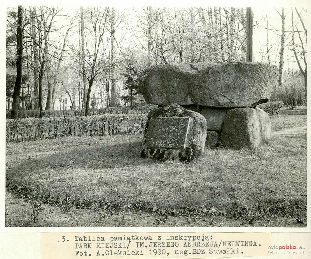 kwiecień 1990 , Pomnik w Parku Miejskim. (Zdjęcie pochodzi z "Dokumentacji ewidencyjnej Parku Miejskiego im. Jerzego Andrzeja Helwinga w Węgorzewie)Skomentuj zdjęcie |