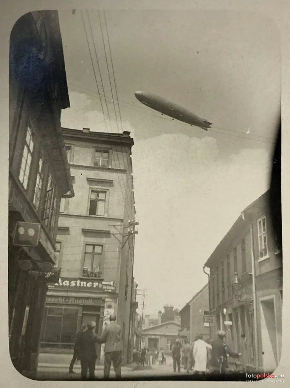 24 czerwca 1930 , Sterowiec nad Kamienną Górą. Widoczny fragment zabudowy dzisiejszej ul. Słowiańskiej, w kierunku ul. Żytniej. Na wprost kamienica narożna nr 15.Skomentuj zdjęcie |