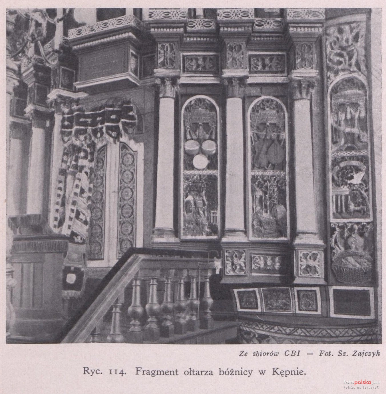 Lata 1938-1939 , Fragment wnętrza. Źródło: Bóżnica w Kępnie, Szymon Zajczyk, 1939.Skomentuj zdjęcie |