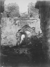 1910 , Widok ze skrzydła północnego przez dziedziniec na skrzydło południowe, na głównym planie wejście do wielkiej sali w skrzydle południowym.Skomentuj zdjęcie |