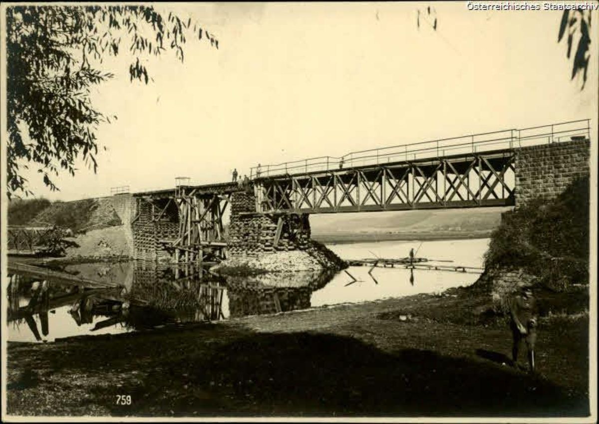 1917 , Wysadzony most kolejowy w okolicach Od-Krowinek - I wojna światowa fronty Galicja |