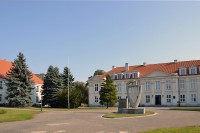 2 pobrania 1518 odsłon 5.39 średnia ocen Poprzednie i następne zdjęcia Tomasz Górny (Nemo5576) Obiekty widoczne na zdjęciu Architekt: Franciszek Placidi Atrakcja turystyczna Zbudowano: 1768-73 Dawniej: Pałac biskupów kujawskich Zabytek: 185-IX-31 z 24.07.1948 oraz 19 Pałac zbudowany w latach 1768-73 według projektu wybitnego architekta włoskiego Franciszka Placidiego jako letnia rezydencja biskupów kujawskich. Należy do najokazalszych, późnobarokowych rezydencji magnackich w Polsce. Jest to budynek dwukondygnacyjny, zbudowany na planie prostokąta. Dawniej był połączony z bocznymi oficynami półkolistymi galeriami kolumnowymi. W czasie I wojny światowej spłonęły dachy nad kopusem głównym i oficyną południowo-wschodnią. W latach 1922-1923 zespół odbudowano oszpacając pałac facjatami na dachu oraz w miejsce dwukolorowej elewacji całość otynkowano na szaro. Zlikwidowano klatki schodowe. We wrześniu 1939 roku spaleniu uległa południowo-wschodnia oficyna. Po wojnie pałac był użytkowany przez Wyższą Szkołę Gospodarstwa Wiejskiego, Dom Dziecka i Liceum Pedagogiczne. W latach 1950-61 przeprowadzono generalną restaurację. Od 1967 roku jest siedzibą Zespołu Szkół Rolniczych. W ostatnich latach staraniem dyrekcji szkoły przeprowadzono zabiegi konserwatorskie. Przed pałacem stoi Pomnik Czynu Grunwaldzkiego, odsłonięty w 1960 roku w 550. rocznicę wymarszu wojsk Władysława Jagiełły z Wolborza pod Grunwald. W pałacu mieści się izba muzealna, przechowująca eksponaty z dziejów Wolborza. ul. Modrzewskiego Andrzeja więcej zdjęć (147) |