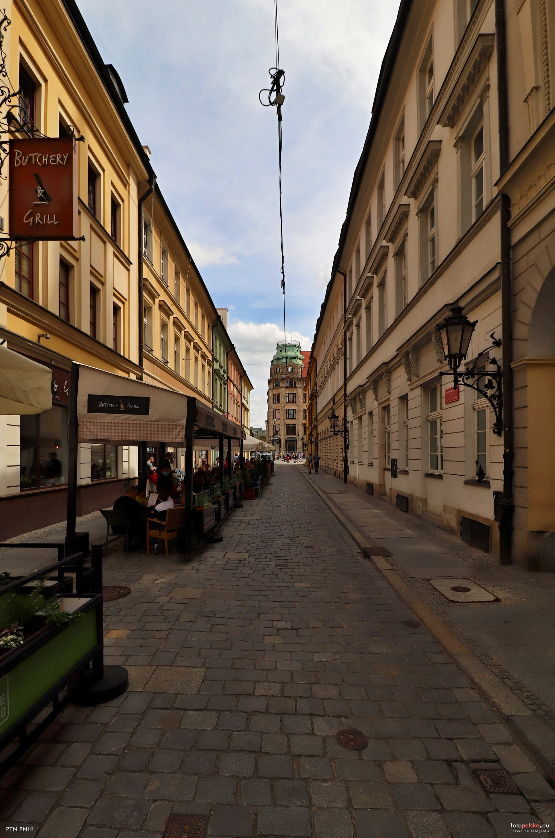 0 pobrań 618 odsłon 6 średnia ocen Poprzednie i następne zdjęcia vetinari Obiekty widoczne na zdjęciu ul. Sukiennice więcej zdjęć (441) Dawniej: Elisabeth Strasse Ulica powstała w trakcie przebudowy wrocławskich sukiennic pod kierunkiem Ferdynanda Tschecha w latach 1820-1825. |