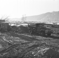 1970 , Samochody ciężarowe na budowie. W tle Wzgórze Golm.Skomentuj zdjęcie |