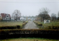 1997 , Widok na byłą rządcówkę nr.39 z pałacu w głębi dawny dom pracowników |