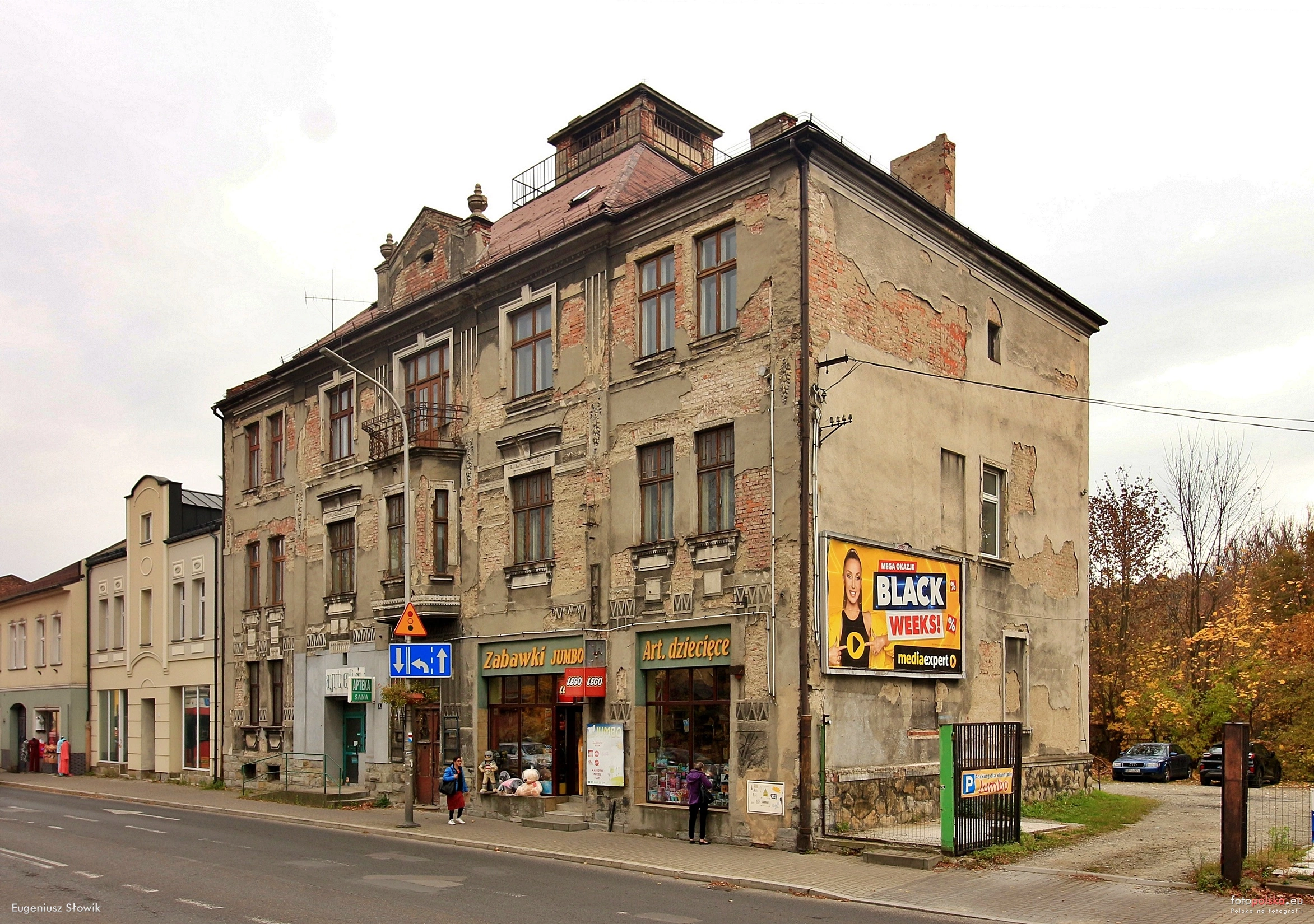 0 pobrań 412 odsłon 6 średnia ocen Poprzednie i następne zdjęcia Eugeniusz S. Obiekty widoczne na zdjęciu Dworcowa 11 więcej zdjęć (4) ul. Dworcowa więcej zdjęć (146) Dawniej: Główna Ulica Dworcowa – główna arteria komunikacyjna dzielnicy Zabłocie w Żywcu. Stanowi jej centrum handlowo-usługowe. Ulica biegnie od Alei Jana Pawła II przez most na Sole do skrzyżowania z ulicą Słonki, gdzie przechodzi w ulicę Browarną. Początkowo nosiła nazwę ulica Główna. W czasie okupacji ulicy nadano nazwę Hauptstrasse. Po II wojnie światowej nazwę zmieniono na ulicę Marchlewskiego. Po 1990 roku nadano jej obecną nazwę Dworcowa. Ulica Dworcowa skupiała niegdyś sklepy, składy z materiałami i zakłady rzemieślnicze. Mieściła się tu jedna z największych i najpopularniejszych restauracji \"Pod Góralem\". Obok znajdował się magazyn z artykułami żelaznymi, a przy skrzyżowaniu z ul. Wesołą – sklep z przyborami piśmienniczymi. Naprzeciwko znajdowała się apteka, a za nią sklep spożywczy. W kamienicy numer 49 mieścił się popularny hotel \"Munk\". Na parterze znajdowały się dwie restauracje. Prawą stronę zajmowała restauracja Munka, lewą zaś restauracja J. Waksa. Były hotel Munka znajdował się naprzeciwko dworca kolejowego. Nadbudowę budynku stanowi belweder ozdobiony pięknymi motywami epoki odrodzenia tzw. wolutami. Belweder ozdobiony jest także pilastrami imitującymi barokowe kolumny w okowach. Nad drzwiami budynku znajduje się fronton, który jest zakończeniem obramowań drzwiowych. Wewnętrzne pole frontonu, czyli tympanon wypełniony jest dekoracją, w tym wypadku inicjałami \"H.M.\". Nad drzwiami kamienicy umieszczony jest zwornik. Okna i drzwi są zdobione dodatkowo elementami boniowania. Charakterystycznym elementem architektonicznym tej kamienicy są tzw. naczułki, które znajdują się nad drzwiami i nad belwederem. W 1968 roku PSS oddała do użytku Spółdzielczy Dom Handlowy \"Beskid\" (ul. Dworcowa 65a, obecnie Neonet), wtedy drugi z kolei większy sklep na terenie miasta po Rolniczym Domu Towarowym położonym przy ul. Dworcowej 16 (obecnie Avans). W 1980 roku wybudowano przejście podziemne pod ulicą prowadzące z dworca autobusowego na plac przed dworcem kolejowym. Źródło: |