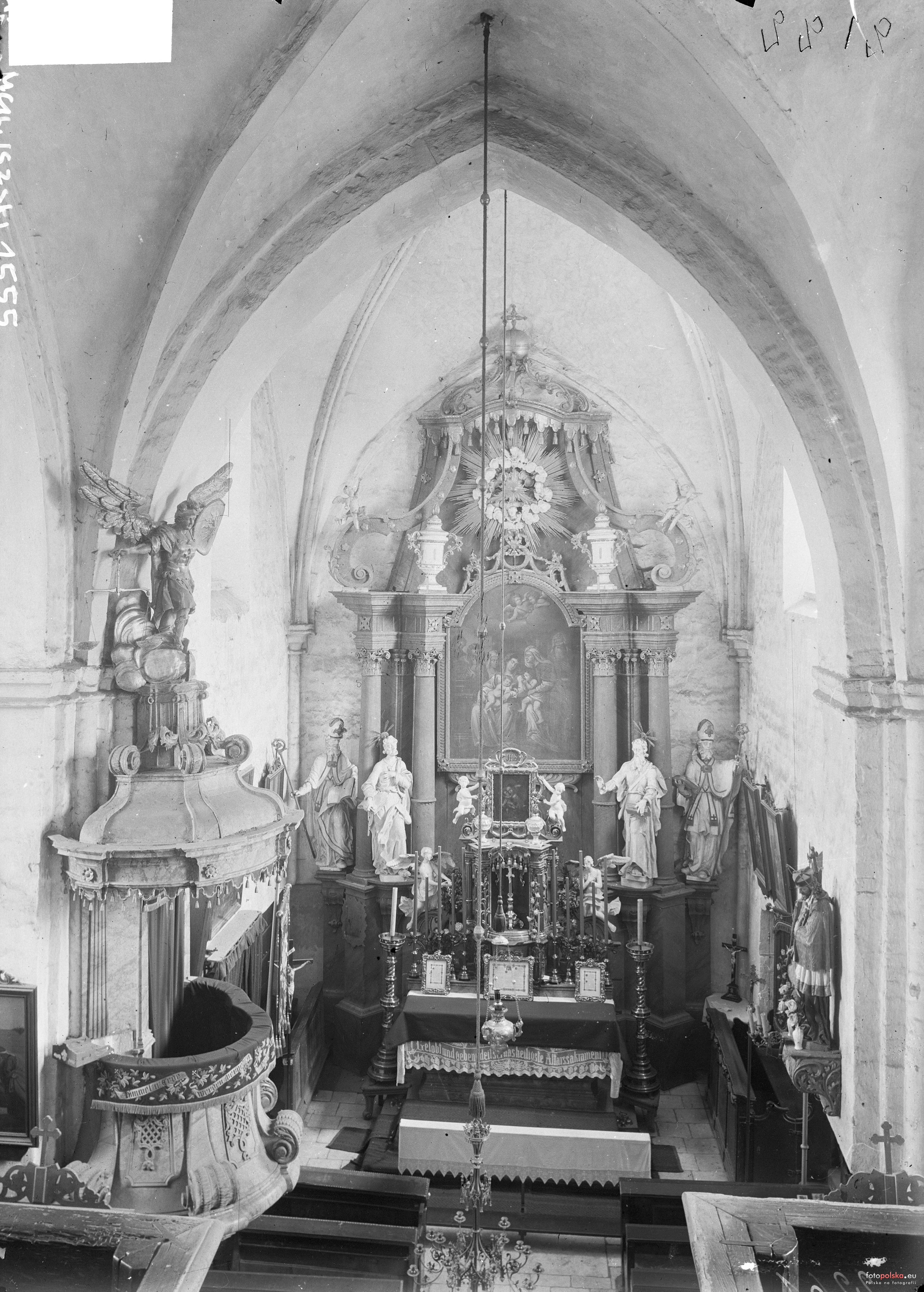 1 pobranie 1248 odsłon 6 średnia ocen Poprzednie i następne zdjęcia Desperado Obiekty widoczne na zdjęciu Wnętrze więcej zdjęć (39) Kościół Narodzenia NMP i św. Jerzego więcej zdjęć (47) Atrakcja turystyczna Zbudowano: XIII Zabytek: 920/64 z 30.05.1964 Wczesnogotycki murowany kościół par. został zbudowany w poł. XIII w. Był kilkakrotnie przekształcany: XV/XVI w. rozpięto sklepienia krzyżowe i krzyżowo-żebrowe. W XVIII w. dostawiono barokową kaplicę, w 1824 kruchtę zach. Zamysł powiększenia korpusu powstał w 1898 r., lecz zrealizowano go dopiero w l. 1931-1933. W tym czasie Lukas Mrzyglod, prowadzący prace konserwatorskie, odsłonił i poddał renowacji malowidła ścienne oraz obudowany portal główny. Wnętrza pokryto polichromiami: prezbiterium w 2 ćw. XIV, transept w XV/XVI w. W czasach nowożytnych zostały one częściowo przykryte nową dekoracją, a później zatynkowane. Następne powstały w 1 poł. XVII w. (m.in. na płn. ścianie prezbiterium). Kościół położony jest na niewielkim wzniesieniu w centrum wsi i otoczony kamiennym murem. Na przykościelnym cmentarzu jest kilka XIX-wiecznych nagrobków. Obecna forma kościoła jest wynikiem przekształceń w XIX i XX w. Wczesnogotycki kościół został wymurowany z cegły w wątku wendyjskim, do kamiennych detali użyto granitu. Jest orientowany, założony na planie krzyża łacińskiego, z masywną wieżą zach. oraz zakrystią i kaplicą św. Józefa po bokach prezbiterium. Korpus i transept nakryto stromymi dachami, oryginalnie wyłożonymi dachówką. Wnętrza doświetlają smukłe ostrołukowe okna. Elewacje pierwotnego prezbiterium zdobi podwójny ceramiczny fryz arkadkowy. Południowy kamienny portal uskokowy ma wczesnogotyckie, XIII-w. formy. Portal jest znacznie zniszczony, widać jeszcze ślady wieńczącej go trójkątnej wimpergi i fragmenty maswerkowego tympanonu. Masywna wieża dzwonna zakończona jest arkadowym fryzem na kamiennych konsolach i krenelażem. Na południowej ścianie jest namalowana nieczytelna już tarcza zegara słonecznego. Od zachodu do wieży przylega późniejsza kruchta, a do północnego transeptu kaplica św. Józefa. Do średniowiecznego kościoła od wsch. dostawiona jest część z pocz. lat 30. XX w., wyprowadzona aż poza teren ogrodzony murem i zakończona nowym prezbiterium. Jest szersza i niższa od d. prezbiterium, przykryta dwuspadowo z wieżyczką na sygnaturkę i oknami dachowymi. Elewacje są otynkowane. Rozbudowa w stylu ekspresjonistycznym objęła także zewn. stolarkę drzwiową (w tym drzwi w XIII-w. portalu). Gotyckie wnętrza przykryte są krzyżowymi i krzyżowo-żebrowymi sklepieniami. Nad chórem muzycznym jest barokowe sklepienie kolebkowo-krzyżowe. Ściany średniowiecznego wnętrza pokryte są malowidłami, które powstały w 3 fazach i są dziełem różnych warsztatów. W prezbiterium w 3 strefach przedstawiono cykl pasyjny, w 4. żywoty świętych (czytelna jest tylko jedna scena). W miejscu zniesionej polichromowanej ściany wsch. jest teraz otwarcie na nową część kościoła. Późniejsze malowidła transeptu w 2 strefach przedstawiają sceny staro- i nowotestamentowe. Polichromie z 1623 r. znajdują się na ścianie płn. prezbiterium (Sąd Ostateczny) i na chórze muzycznym. Barokowy ołtarz główny Św. Rodziny (w nowym prezbiterium) i ambona z figurą św. Michała pochodzą z 2 poł. XVIII w. Trójnawowe wnętrze nowej części kościoła przykryte jest ostrołukowym sklepieniem kolebkowym. D. kaplica stanowi część nawy południowej. Kościół jest użytkowany, dostępny, plebania znajduje się obok. Oprac. Joanna Szot, OT NID w Opolu, 23.09.2014 r. Źródło: (CC BY-NC-ND 3.0) |