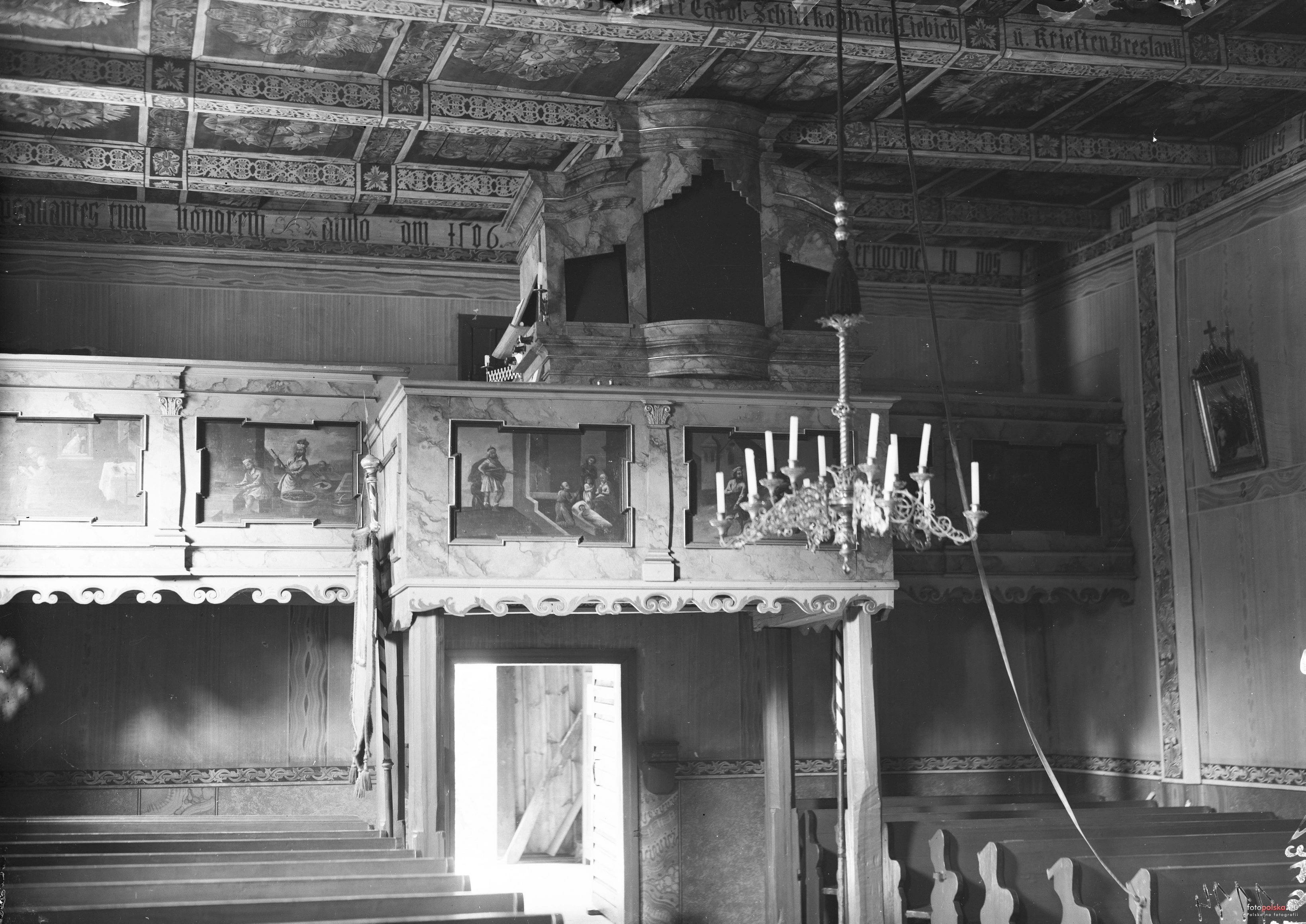 Lata 1920-1930 , Kościół drewniany w Pniowie - wnętrze.Skomentuj zdjęcie |