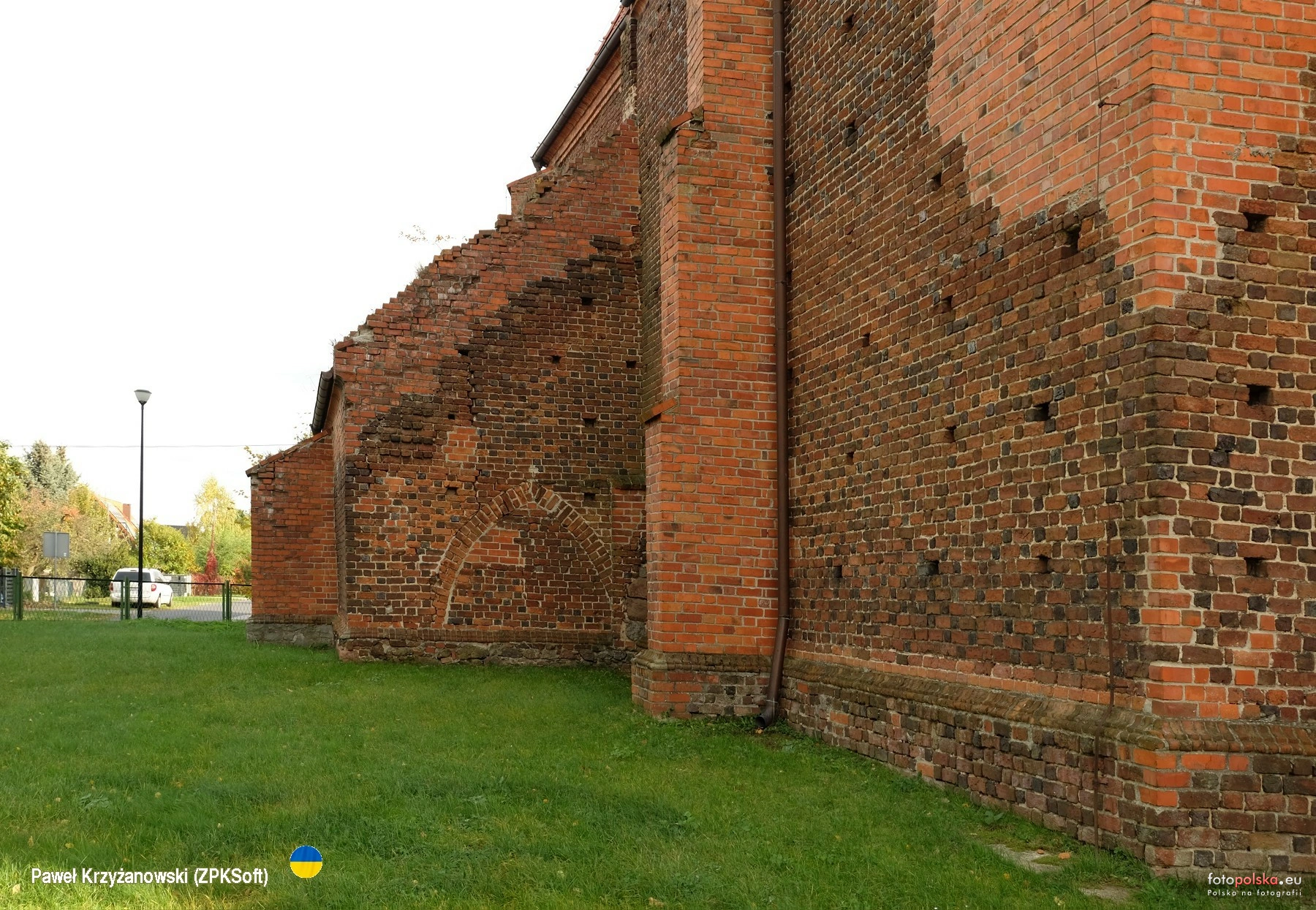 23 października 2024 , Kościół Chrystusa Króla, jego obecny wygląd gotycki pochodzi z pierwszej połowy XV w. a wieża z drugiej połowy XIX w. Zniszczony w czasie działań wojennych w 1945 r., odbudowany w latach 70. XX w. Na zdjęciu fragment muru północnego ze śladem przebudowy.Skomentuj zdjęcie |