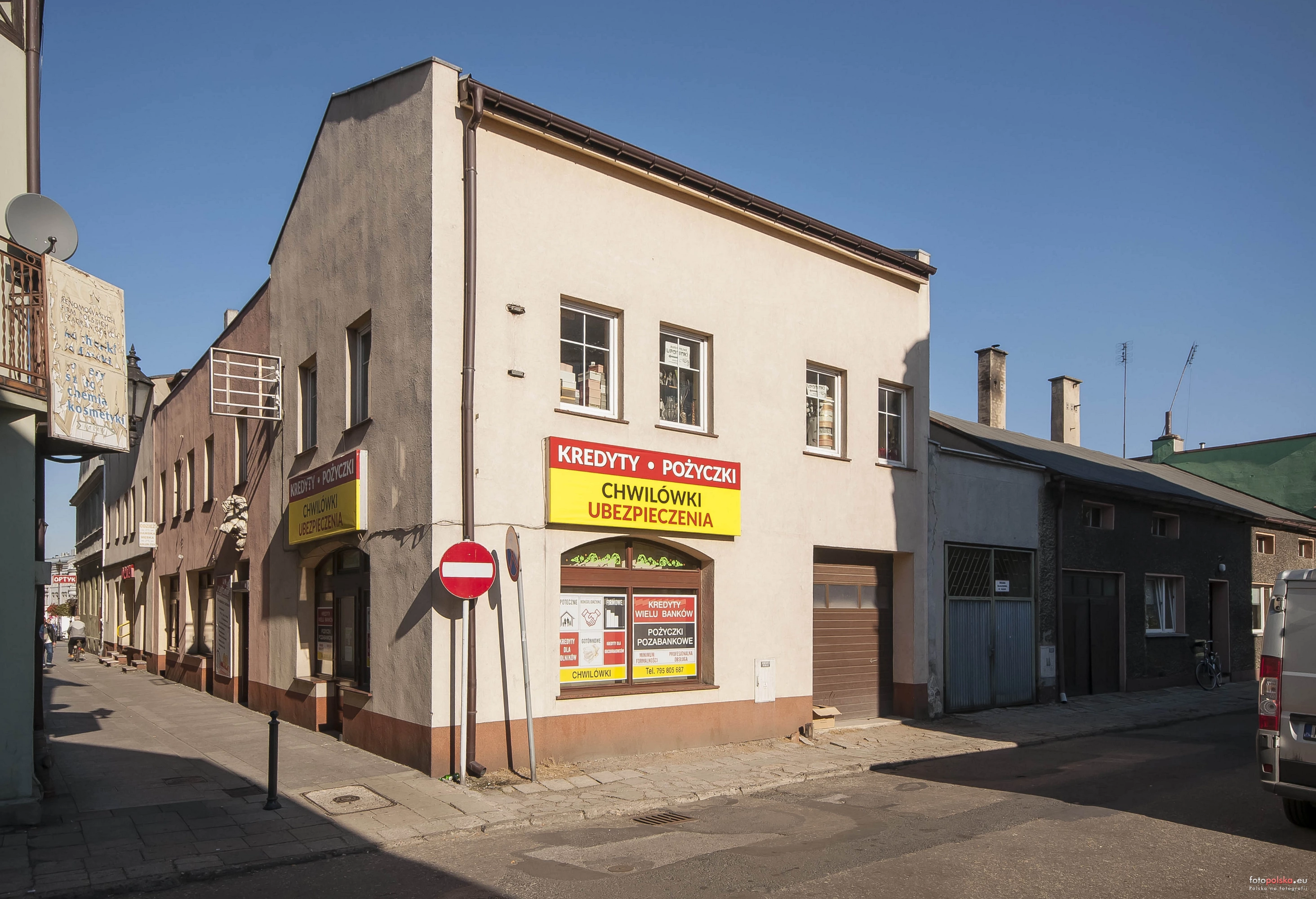 14 października 2018 , Budynek stojący na działce kamienicy nr 1 przy kępińskim Rynku. Widok ze skrzyżowania ul. Adama Mickiewicza z ul. Jana Kilińskiego. |