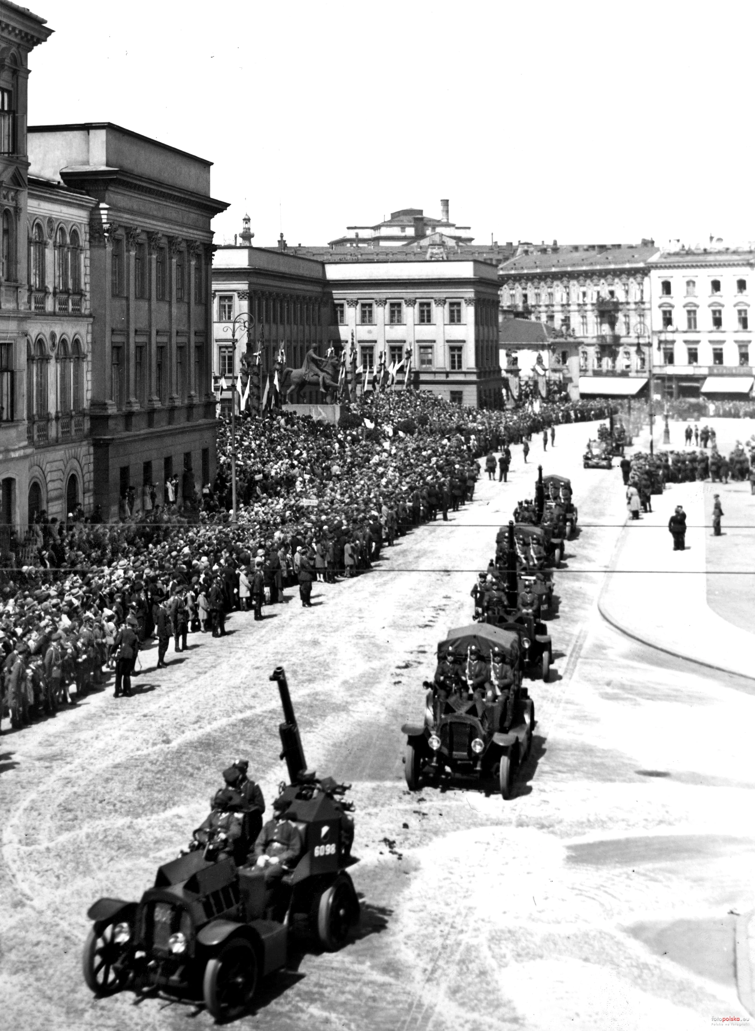 3 maja 1933 , Pierwszy Pułk Artylerii Przeciwlotniczej, wyposażony w samochody De Dion-Bouton, w trakcie defilady przed Pałacem Saskim podczas rewii wojskowej w czasie uroczystości trzeciomajowych.Skomentuj zdjęcie |