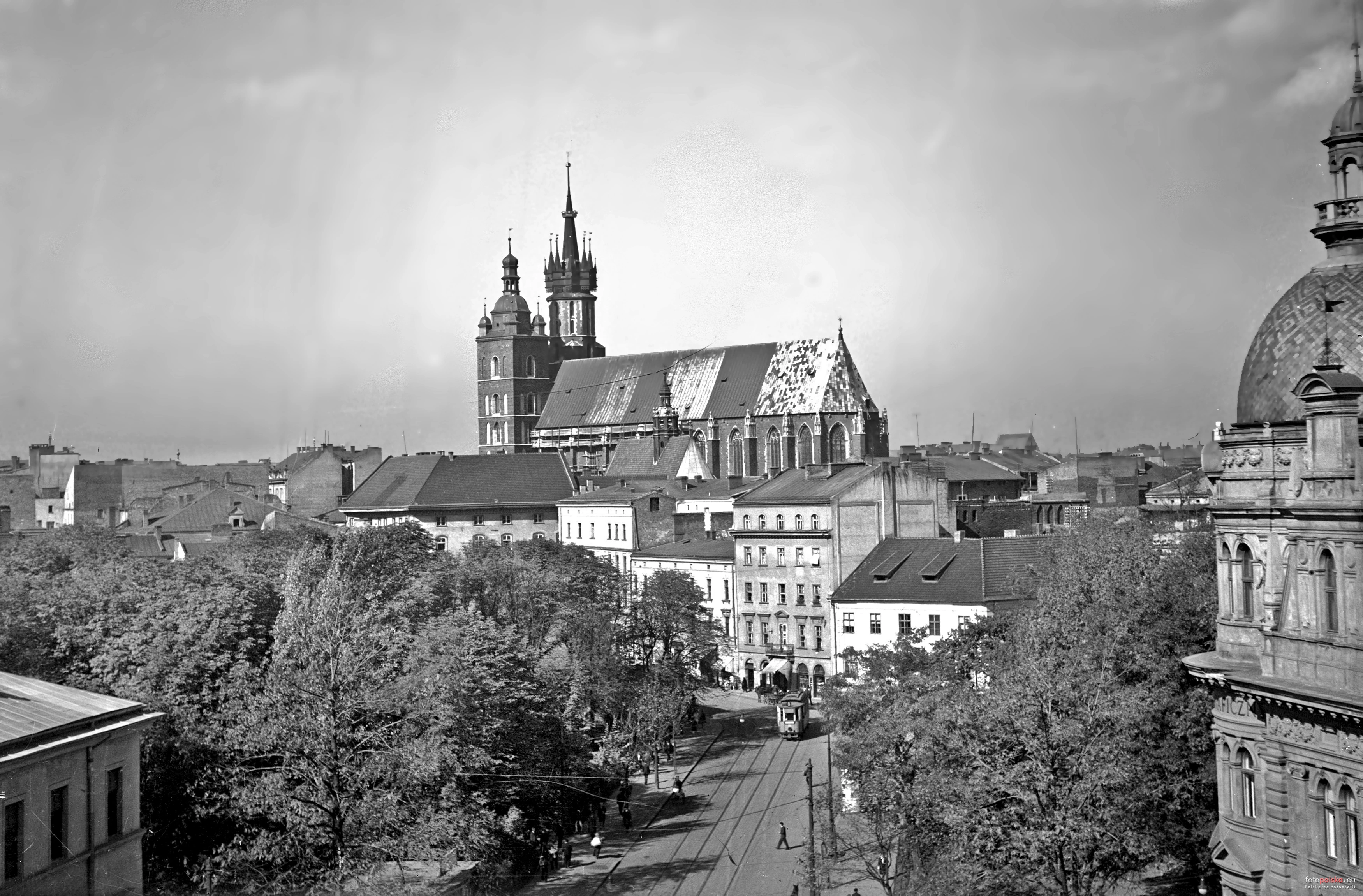 Lata 1928-1930 , Ujęcie z Pałacu Prasy na ulicę Sienną i kościół Mariacki. Z prawej widoczny fragment budynku Poczty Polskiej.Skomentuj zdjęcie |