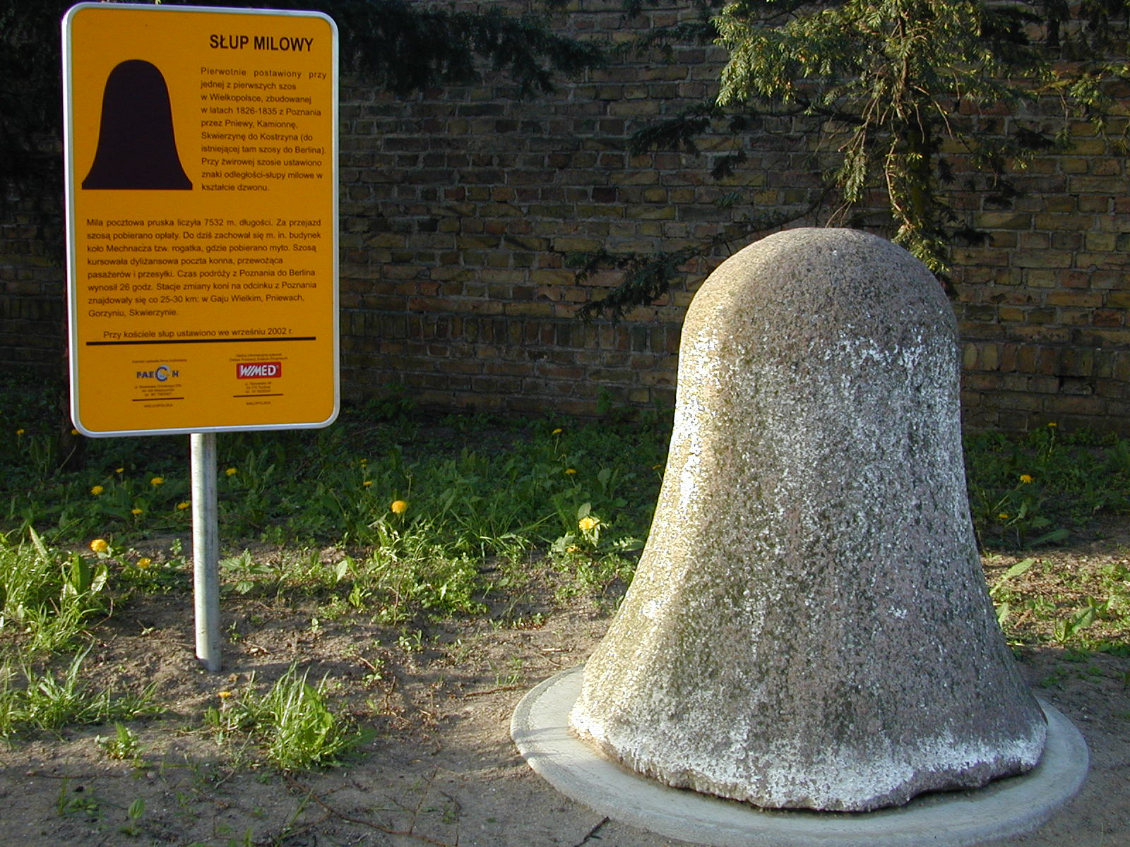 4 maja 2003 , Słup milowy stojący przy kościele. Stanął tu w 2002 roku, przeniesiony z innego miejsca (jakiego, nie wiem). Merytorycznie nie ma z kościołem nic wspólnego, ale nie posiada również własnego adresu.Skomentuj zdjęcie