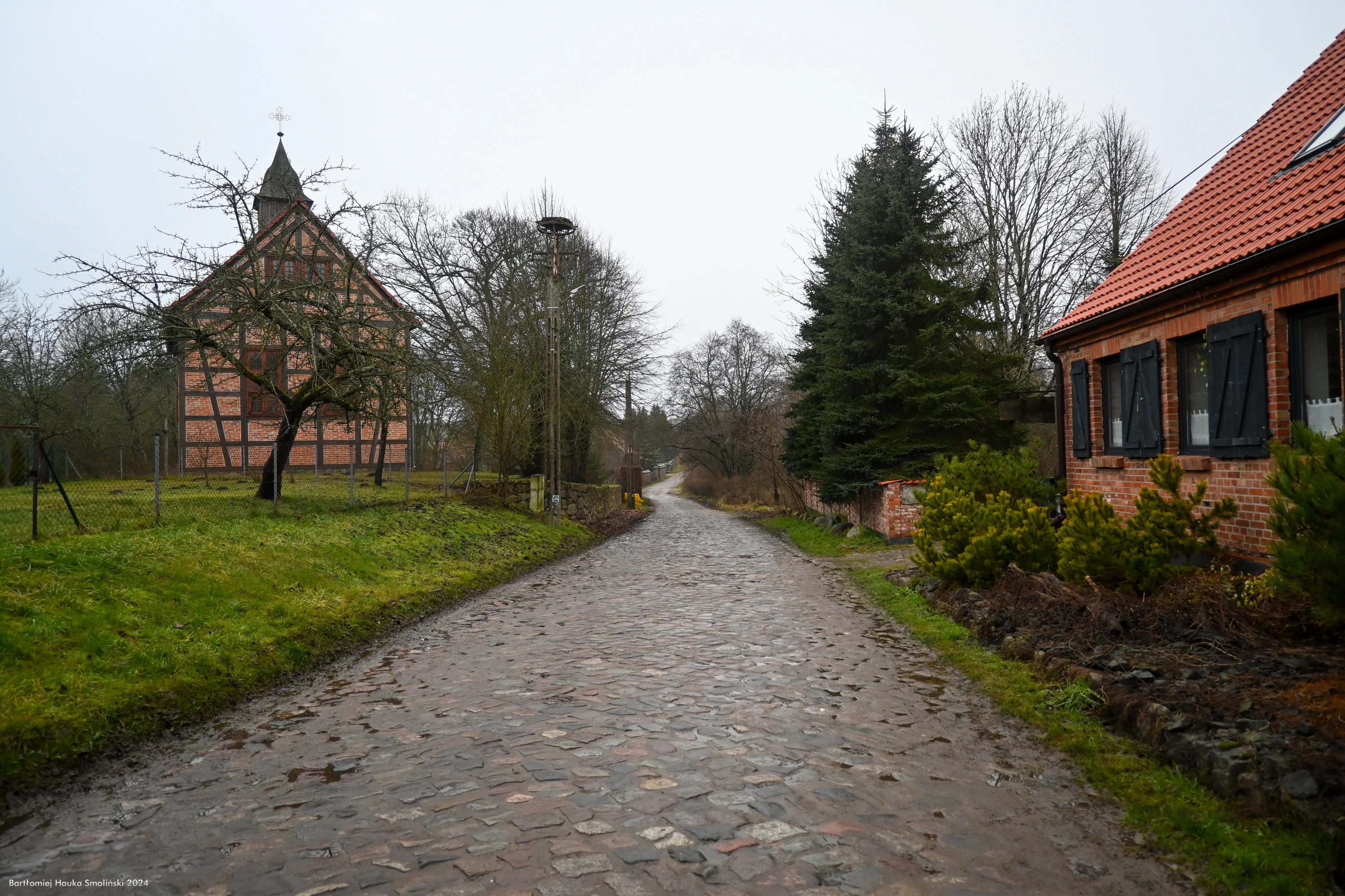 , Perspektywa głównej drogi wiodącej przez Gronowo, widok w kierunku zachodnim.