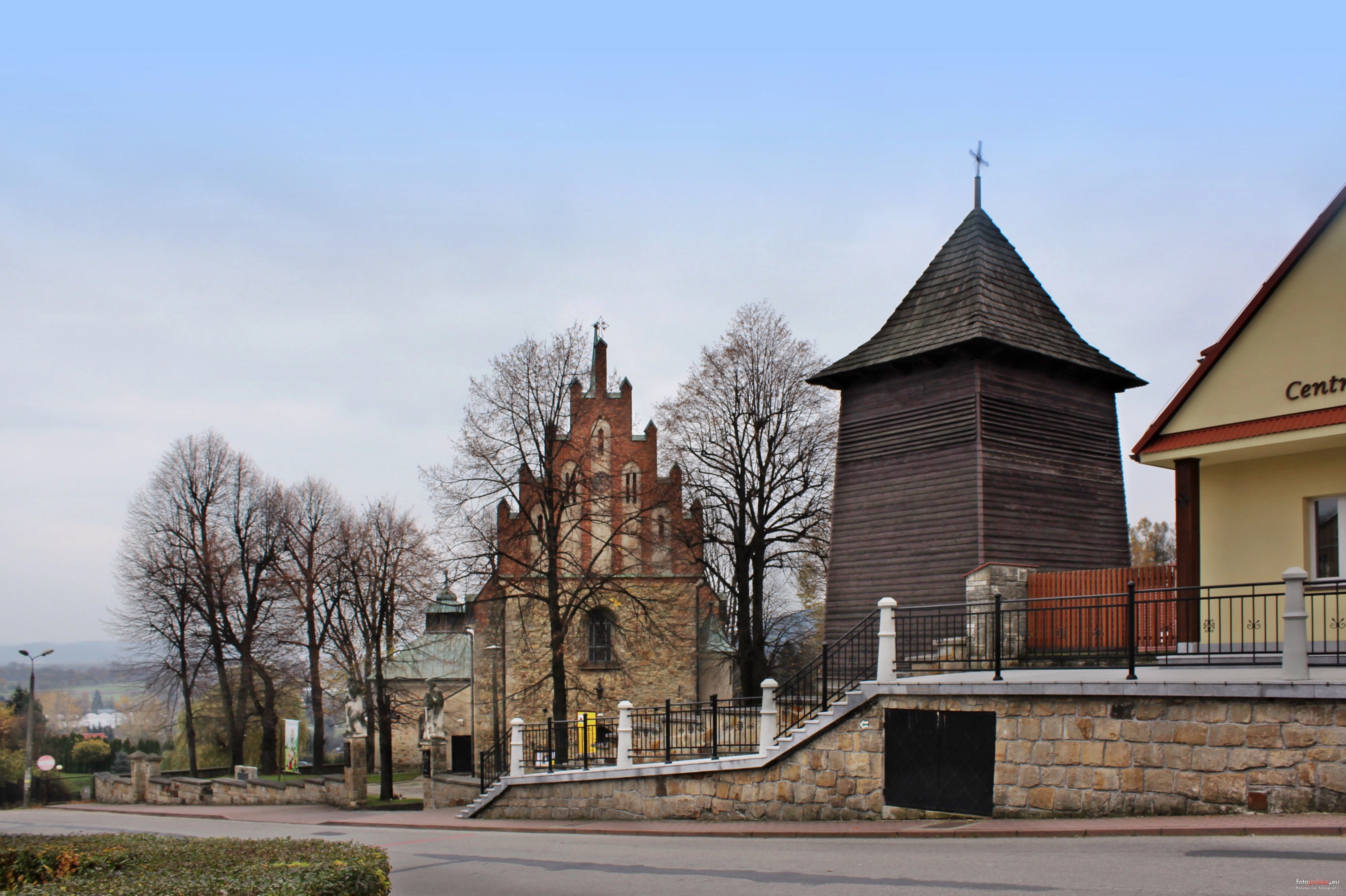 7 listopada 2017 , Kościół Narodzenia NMP, obok drewniana dzwonnica.