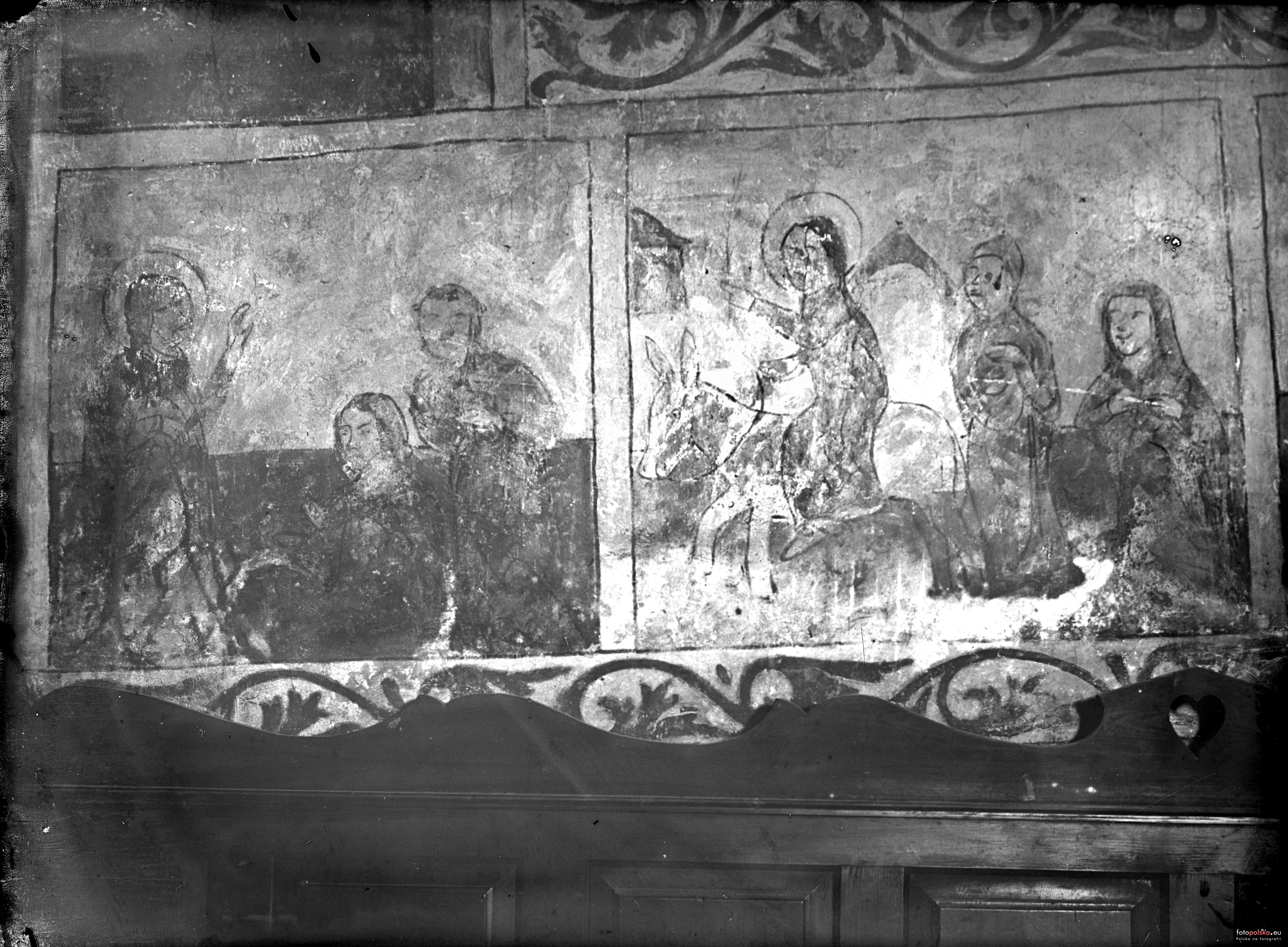 Nad bocznym wyjściem od strony południowej znajduje się obraz św. Anny.