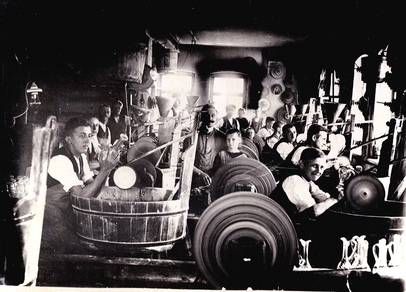 Lata 1925-1935 , Wnętrze szlifierni kryształów w hucie szkła.Skomentuj zdjęcie |