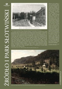 Lata 1870-1890 , Wystawa, którą można oglądać w budynku Pijalni Słotwińskiej pod nazwą: „Źródło i Park Słotwiński”, zaprezentowana przez Bibliotekę Publiczną w Krynicy-Zdroju. Na sześciu planszach wyeksponowano najdawniejsze widoki Parku Słotwińskiego, w tym reprodukcję obrazu Wojciecha Gersona z 2, połowy XIX w., pierwszą fotografię tej okolicy autorstwa Z. Edera z 1872 r. czy ilustracje przedstawiające Pijalnię Słotwińską z czasów, kiedy jeszcze znajdowała się na Deptaku i była częścią tzw. chińskiego pawilonu.Skomentuj zdjęcie |