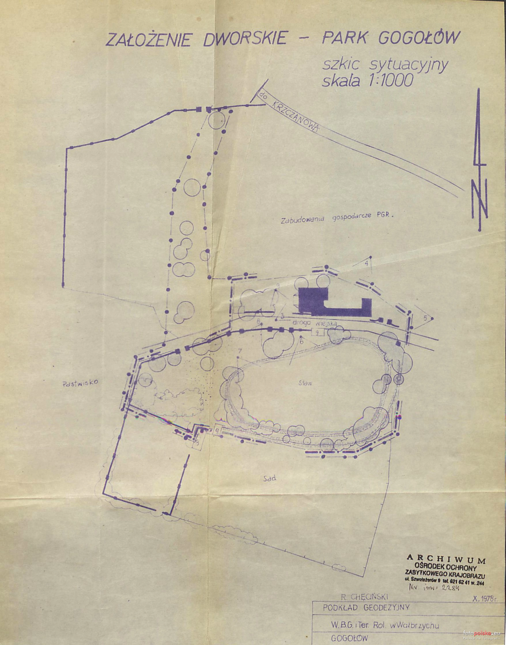 1975 , Plan założenia parku dworskiego w Gogołowie. (Zdjęcie pochodzi z "Analizy i ewidencji parku w Gogołowie").Skomentuj zdjęcie |