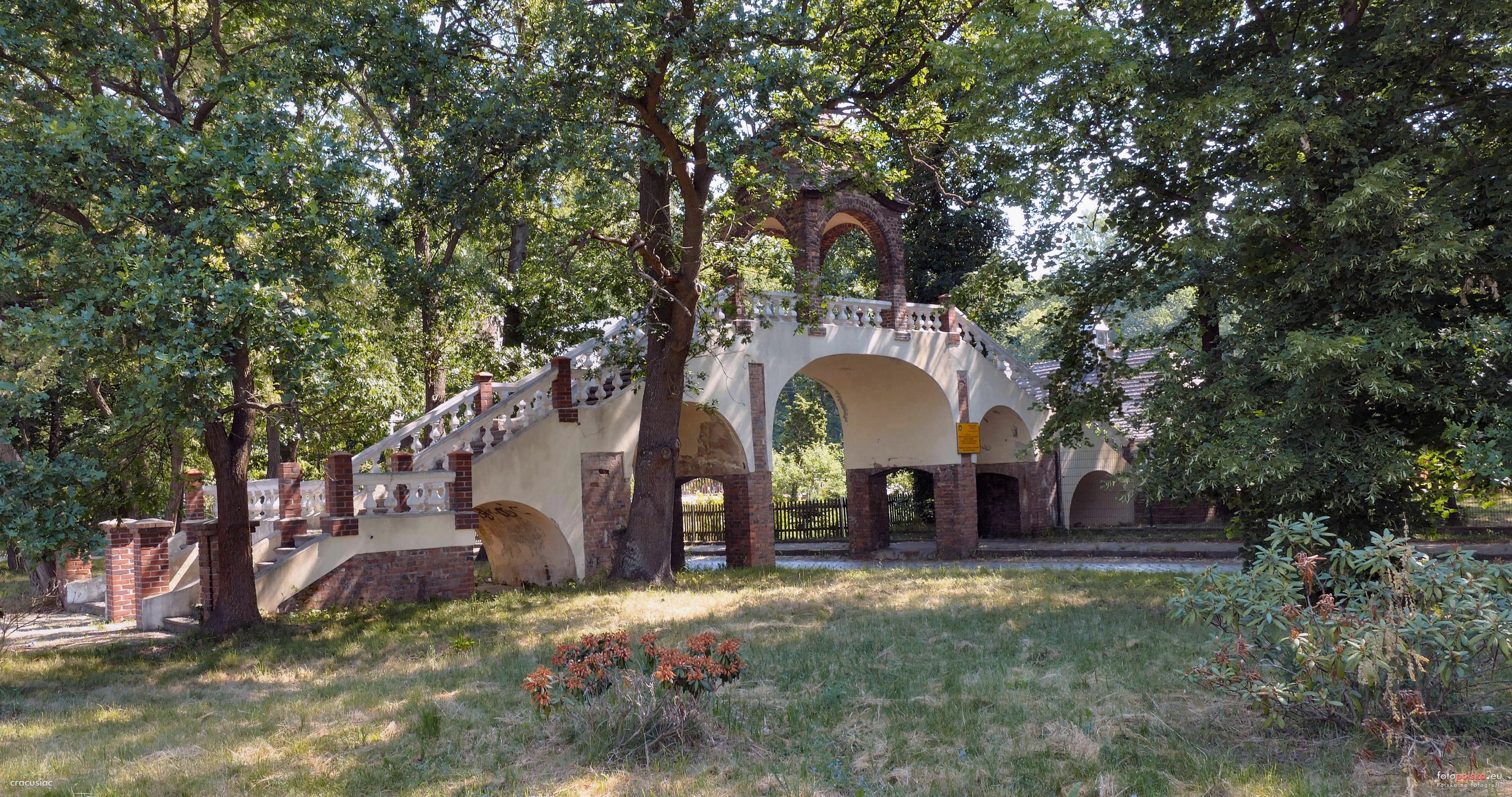 0 pobrań 546 odsłon 6 średnia ocen Poprzednie i następne zdjęcia cracusiac Obiekty widoczne na zdjęciu Mostek Miłości więcej zdjęć (10) Zbudowano: 1907 Dawniej: Wiadukt nad ulicą Ogrodową Wiadukt parkowy nad ulicą Ogrodową w Iłowie, został wybudowany w latach 1906 - 1907 na zlecenie ówczesnego właściciela posiadłości parkowo - pałacowej, hrabiego Rzeszy Friedricha Hochberga von Furstensteina. Wiadukt nad ulicą Ogrodową stanowi najbardziej na zachód wysunięty element ogrodu francuskiego. W pierwotnym założeniu, budowa tego obiektu nie była planowana. Powodem wzniesienia tej budowli, był spór hrabiego z tutejszym fabrykantem, Hansem Winklerem. Od niemieckiego Banku Rolnego (który swego czasu przejął posiadłość pałacową za długi), Winkler otrzymał prawo służebności "drogi koniecznej", na części gruntów pałacowych (obecna ul. Ogrodowa). Droga ta stanowiła połączenie fabryki z innymi obiektami fabrycznymi przy ul. Ogrodowej (magazyny, mieszkania pracowników). Droga ta przedzielała posiadłości pałacowe na dwie (nierówne) połowy. Powodem sporów fabrykanta z arystokratą, były częste przypadki kradzieży warzyw, kwiatów i owoców z hodowli pałacowej, ponieważ przy drodze nie ustawiono żadnego ogrodzenia, które utrudniałoby swobodną komunikację między pałacem a ogrodnictwem i tzw. "letnią rezydencją" usytuowaną również po drugiej stronie ulicy Ogrodowej. Wyrokiem sądu książęcego w Żaganiu, Winkler ponownie uzyskał prawo drogi koniecznej. W tej sytuacji hrabia Hochberg wybudował nad ulicą Ogrodową wiadukt, umożliwiający swobodne połączenie obu części posiadłości parkowej, ponieważ wzdłuż ulicy ustawione zostały wysokie, metalowe parkany. Nowy most otrzymał podobny styl, jak mostek nad Czerną. Dzięki temu, ciąg ogrodu francuskiego rozpoczynał się i kończył podobnymi obiektami architektonicznymi. Wiadukt jednak różni się w szczegółach od mostu wodnego. Inaczej rozwiązano wejścia schodowe (dwustronne), ozdobione alabastrowymi maszkaronami (ostatnia rzeźba została skradziona pod koniec XX wieku), wodotryskami i balustradami. Wiadukt ten w środkowej części otrzymał dach w stylu orientalnym, tworząc tam rodzaj altany umożliwiającej obserwację z góry ruchu drogowego. W miejscowej tradycji, mostek ten nosi nazwę "Mostku Miłości". Prawdopodobnie w roku 1905, 50-letni Friedrich Hochberg ożenił się z młodą lecz ubogą, 19-letnią baronówną Gizelą von Salzbach - Gratz. Według miejscowej legendy, młoda hrabina zdradzała męża na lewo i prawo. Prawdopodobnie Friedrich przydybał na tym mostku żonę "na gorącym uczynku", po czym osadził ją w pałacowym areszcie. Kiedy młoda kobieta odzyskała w końcu wolność, wykorzystała w pewnym momencie, moment nieuwagi męża, wykradła biżuterię i część gotówki, po czym ślad po niej zaginął. źródło: ul. Ogrodowa więcej zdjęć (10) |