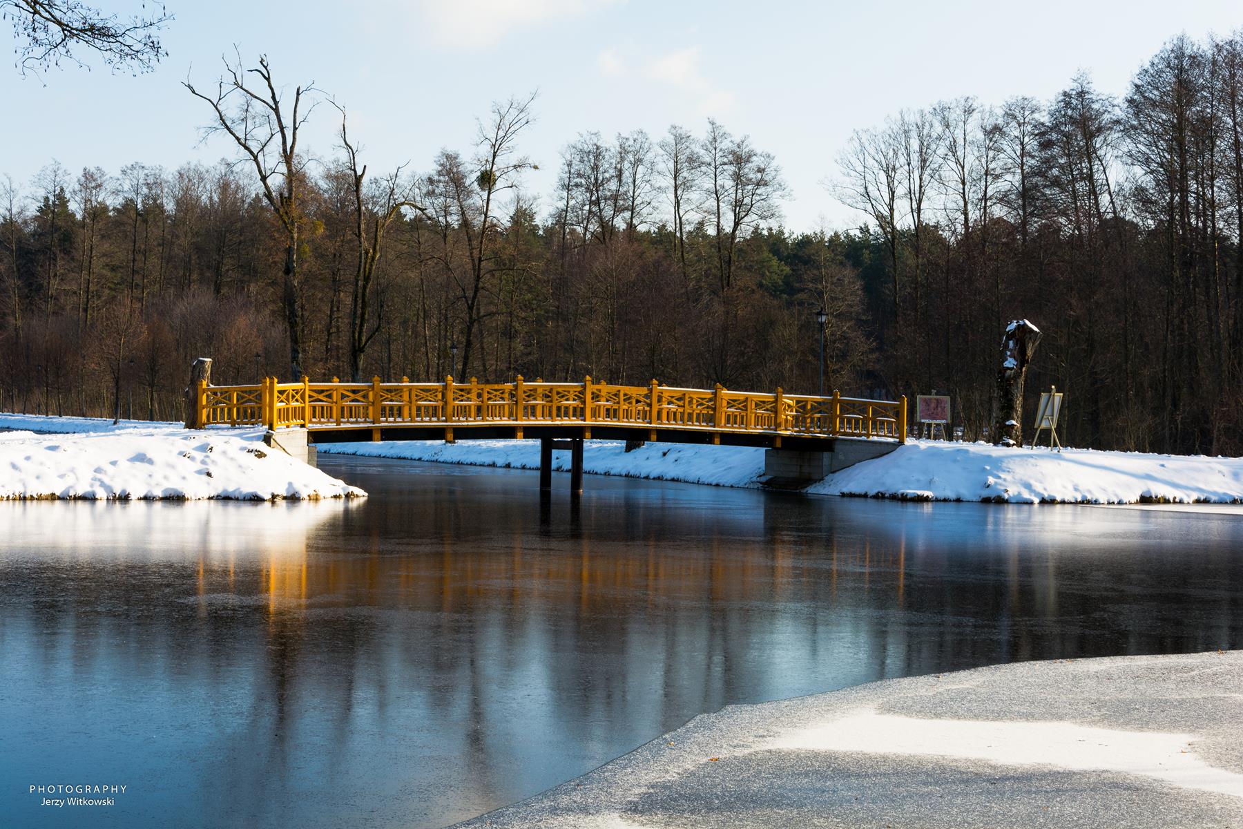 Polska woj. lubelskie powiat zamojski Zwierzyniec Park Środowiskowy Staw z kanałem ogrodowym Kładka