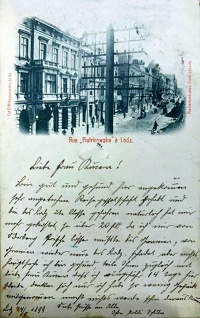 1899 , Kamienice, od lewej: Piotrkowska 68 i 70 oraz - za ul. Traugutta - Grand Hotel, a na przodzie, niestety, kawał drewnianego słupaSkomentuj zdjęcie |