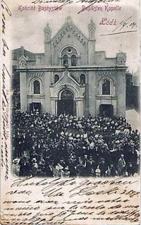 Pocztówki B. Wilkoszewskiego więcej zdjęć (66) Fotografie Bronisława Wilkoszewskiego więcej zdjęć (13) Dawniej: (ur. 1847 w Szczekocinach, zm. 11-06-1901 w Łodzi) Zbór Kościoła Chrześcijan Baptystów więcej zdjęć (6) Zbudowano: 1882 Dawniej: Dom Kultury (?) Milicjanta Zbór Kościoła Chrześcijan Baptystów w Łodzi – zbór Kościoła Chrześcijan Baptystów znajduje się w Łodzi, przy ulicy Nawrot 27. Nabożeństwa odbywają się w każdą niedzielę o godzinie 10:00 i czwartek o godzinie 18:00. Historia Baptyści pojawili się w Łodzi wraz z przybywającymi z terenu Niemiec i Czech rzemieślnikami włókienniczymi w pierwszej połowie XIX wieku. W tym czasie, ze względu na ich niewielką liczbę oraz dopiero rozwijającą się Łódź „przemysłową”, łódzcy baptyści podlegali zborowi w Kicinie, w Wielkopolsce. Pierwszy chrzest pięciu łódzkich baptystów odbył się 25 września 1868 r., w przyfabrycznym stawie zakładów scheiblerowskich, przy obecnej ul. J. Kilińskiego. Udzielił go pionier polskiego baptyzmu – Gotfryd Fryderyk Alf. Łódzkie środowisko baptystów usamodzielniło się z dniem 10 marca 1878. W tym czasie nowo powstały zbór liczył 252 wiernych. Istotnym wydarzeniem w życiu łódzkiej społeczności baptystycznej było oddanie do użytku budynku zboru przy ul. Nawrot 27 w 25 czerwca 1882. W 1908 wybudowano kościół przy ul. Rzgowskiej 41A (na 500 miejsc). W świątyni tej znalazł siedzibę II zbór w Łodzi (na Chojnach) liczący 200 członków. W 1922 utworzono zbór słowiański z siedzibą przy ul. Gubernatorskiej 25 (obecnie Abramowskiego), natomiast w 1925 wybudowano kościół przy ul. Limanowskiego 60 (na 450 miejsc) jako siedzibę III zboru. W 1945 w związku z opuszczeniem miasta przez większość baptystów niemieckich świątynia została przejęta przez państwo jako mienie poniemieckie. Władze państwowe zajęły kościoły baptystyczne przy ul. Nawrot 27, Limanowskiego 60, ul. Rzgowskiej 41A w Łodzi, Aleksandrowie Łódzkim, Konstantynowie oraz szpital „Betlehem” i Dom Diakonis „Tabea”. W roku 1945 pastorem został Kazimierz Najmałowski. W 1948 roku doszło do wewnętrznych podziałów w zborze pod wpływem modernistycznej teologii. W efekcie podziału powstały dwa zbory, jeden gromadził się przy ul. Abramowskiego, drugi przy ul. Świerczewskiego (dziś Radwańskq). W roku 1958 zbór przy ul. Świerczewskiego przyłączył się do Zjednoczonego Kościoła Ewangelicznego. Budynek zboru przy ul. Nawrot 27 Wspólnota baptystyczna decyzję o budowie własnego obiektu podjęła w połowie lat 70. XIX wieku. Na ten cel w roku 1875 nabyto plac przy ulicy Nawrot 27 (była to posesja Gustawa Scherlinga). Następnie podjęto starania zmierzające do uzyskania zgody władz państwowych na wybudowanie zboru. Projektantem świątyni został architekt Edward Kreutzburg. Prace budowlane ukończono w 1882 roku, a 25 czerwca tego roku budynek został poświęcony i oddany do użytku. Świątynia została zbudowana w stylu neoromańskim, posiadała trzy nawy z emporami. Charakterystyczna fasada świątyni została zakończona trójkątnym szczytem i wyróżniającym ją portalem „lombardzkim”. Pod koniec XIX wieku obiekt rozbudowano wykorzystując projekt architekta Albina Jankau. Od strony południowej dobudowano wówczas obszerną część prezbiterialną oraz postawiono Dom Zborowy. Świątynia służyła łódzkim baptystom do 1945 roku gdy jako mienie poniemieckie została przejęta przez władze państwowe. Od 1946 posesję zajmowała Milicja Obywatelska w Łodzi. Znajdował się w nim najpierw „Dom Milicjanta”, a później „Dom Kultury Milicjanta”. „Dom” mieścił się w budynku znajdującym się na końcu posesji, natomiast frontowa sala modlitw została przekształcona w kino p.n. „DKM” (kino „Dom Kultury Milicjanta”, które pełniło również rolę okazjonalnej sali widowiskowej „Domu”; była w nim zamontowana scena). Po zwrocie posesji baptystom „Dom” i kino uległo likwidacji, a salę dawnego kina z powrotem przebudowano na salę modlitw. Przy okazji gruntownej zmianie uległa jej pierwotna fasada. Autorzy: Źródło: ul. Nawrot więcej zdjęć (141) Dawniej: Horst Wessel Str Nazwa ulicy wywodzi się z czasów, gdy powstawała Łódź przemysłowa. Wówczas furmani nawracali na niej rolwagi, czyli platformy z ładunkiem, ciągnięte przez konie. * Nazwa ulicy funkcjonuje od 1827 roku * W czasach okupacji wojennej nazwę zmieniono na Horst Wessel Strasse * W 1955 roku na krótko zyskała patrona Teodora Jelińskiego Obecnie na ulicy między stare kamienice wpisano bloki TBS i apartamentowce. Ulica jest na odcinku i w kierunku od ulicy Piotrkowskiej do ul. Wysokiej ulicą o ruchu jednokierunkowym. Wikipedia |