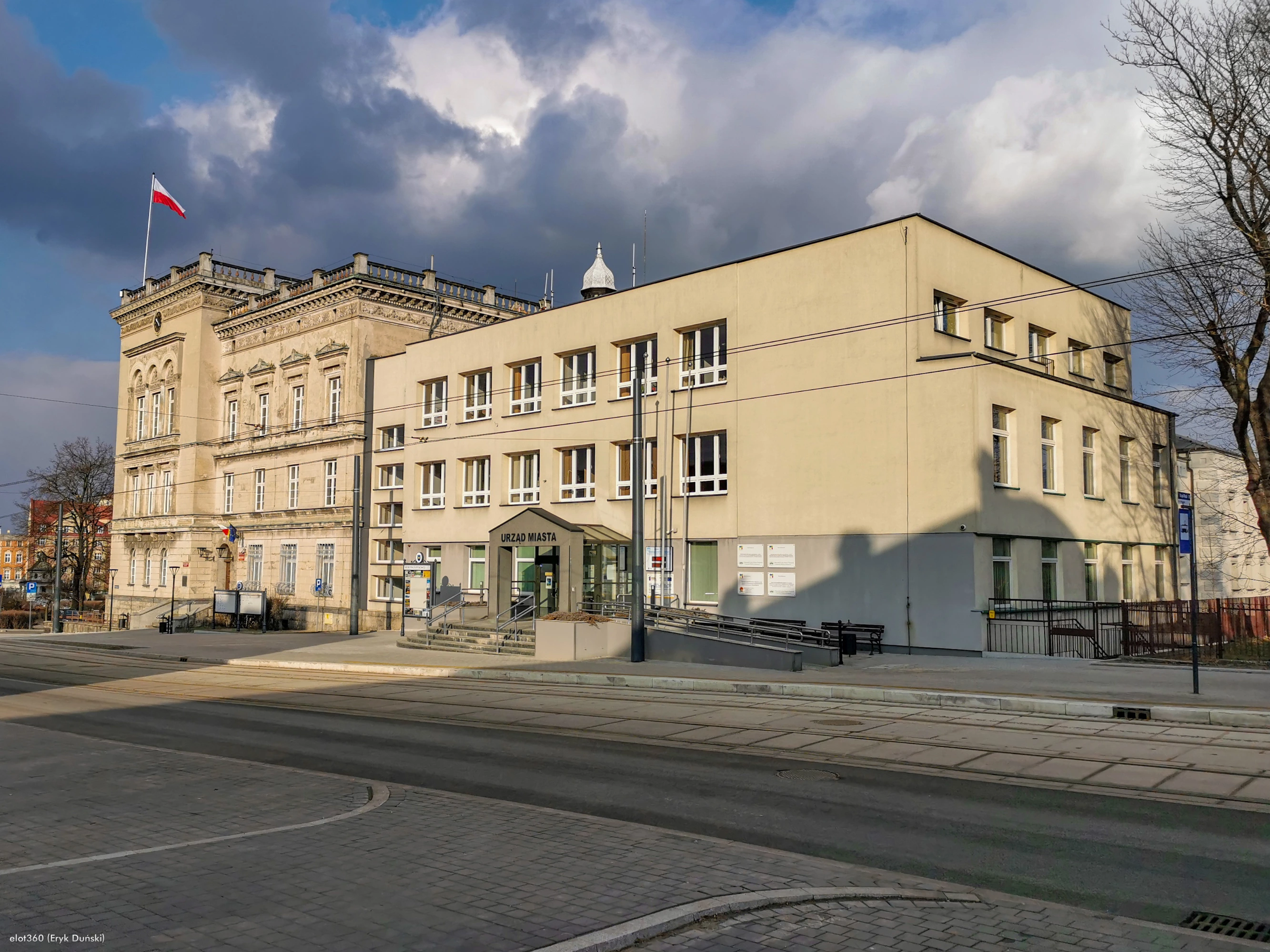 2 lutego 2025 , Budynek UM w Mysłowicach. Z prawej strony kadru słupek nowego przystanku tramwajowego "Mysłowice Urząd Miasta"Skomentuj zdjęcie |