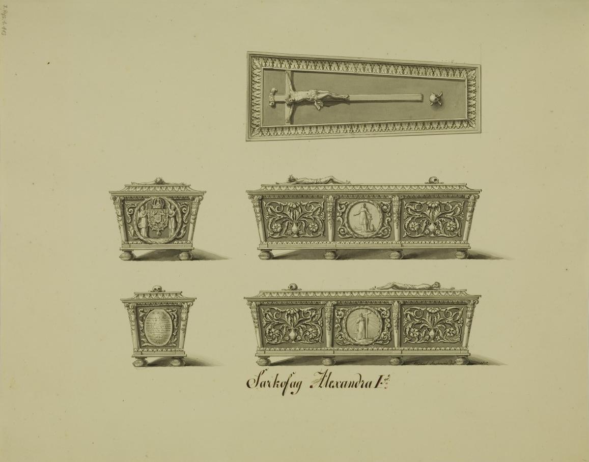 1817 , Sarkofag księcia Aleksandra Karola Wazy - najmłodszego syna króla Zygmunta III, według rysynku Michała Stachowicza.