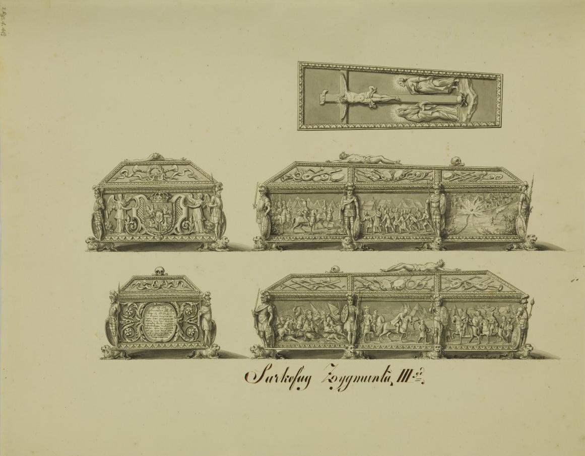 Zygmunt III Waza zm. 30 kwietnia 1632. Sarkofag króla wykonany z cyny w Gdańsku zdobią figurki bohaterów i królów biblijnych.