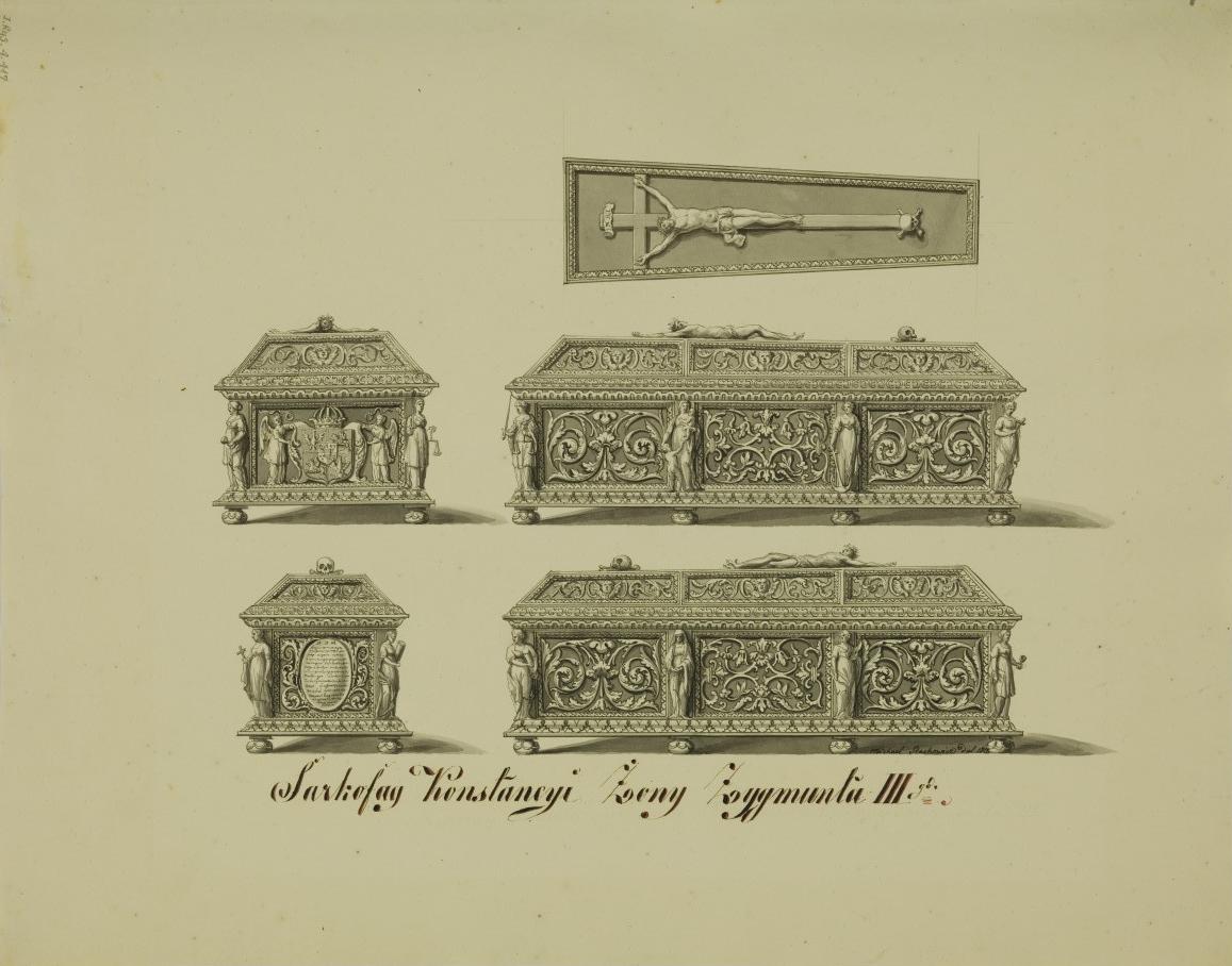 1817 , Sarkofag królowej Konstancji Habsburżanki, drugiej żony króla Zygmunta III Wazy, według rysunku Michała Stachowicza.