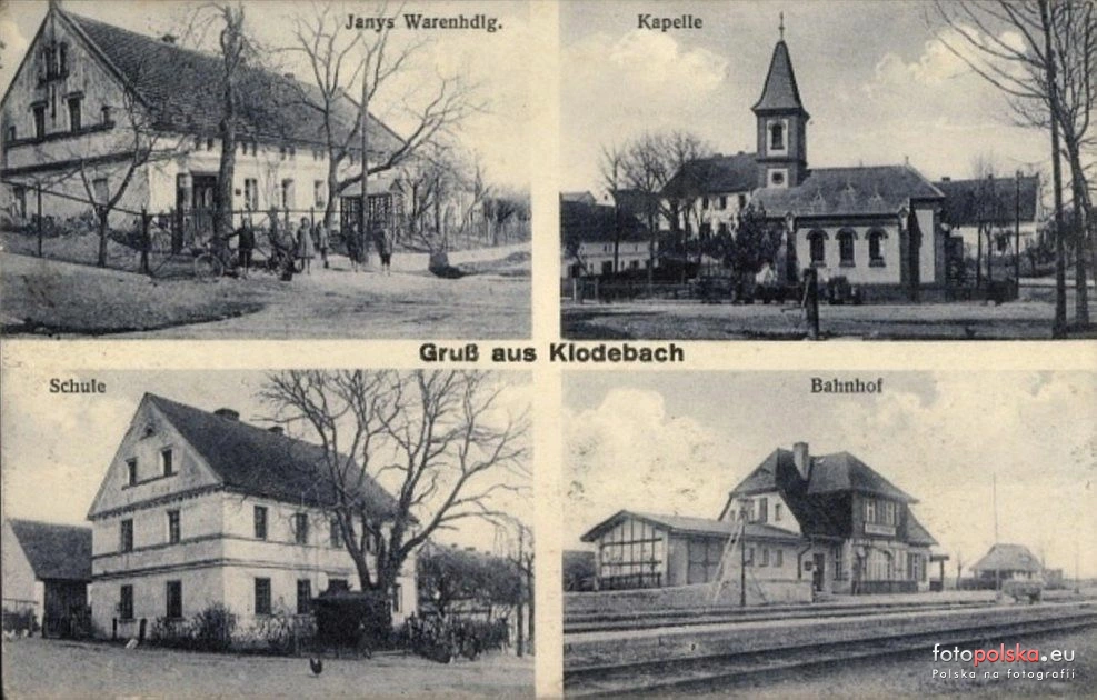 Lata 1920-1925 , Pocztówka z Kłodoboku - sklep, kaplica, szkoła, dworzecSkomentuj zdjęcie |