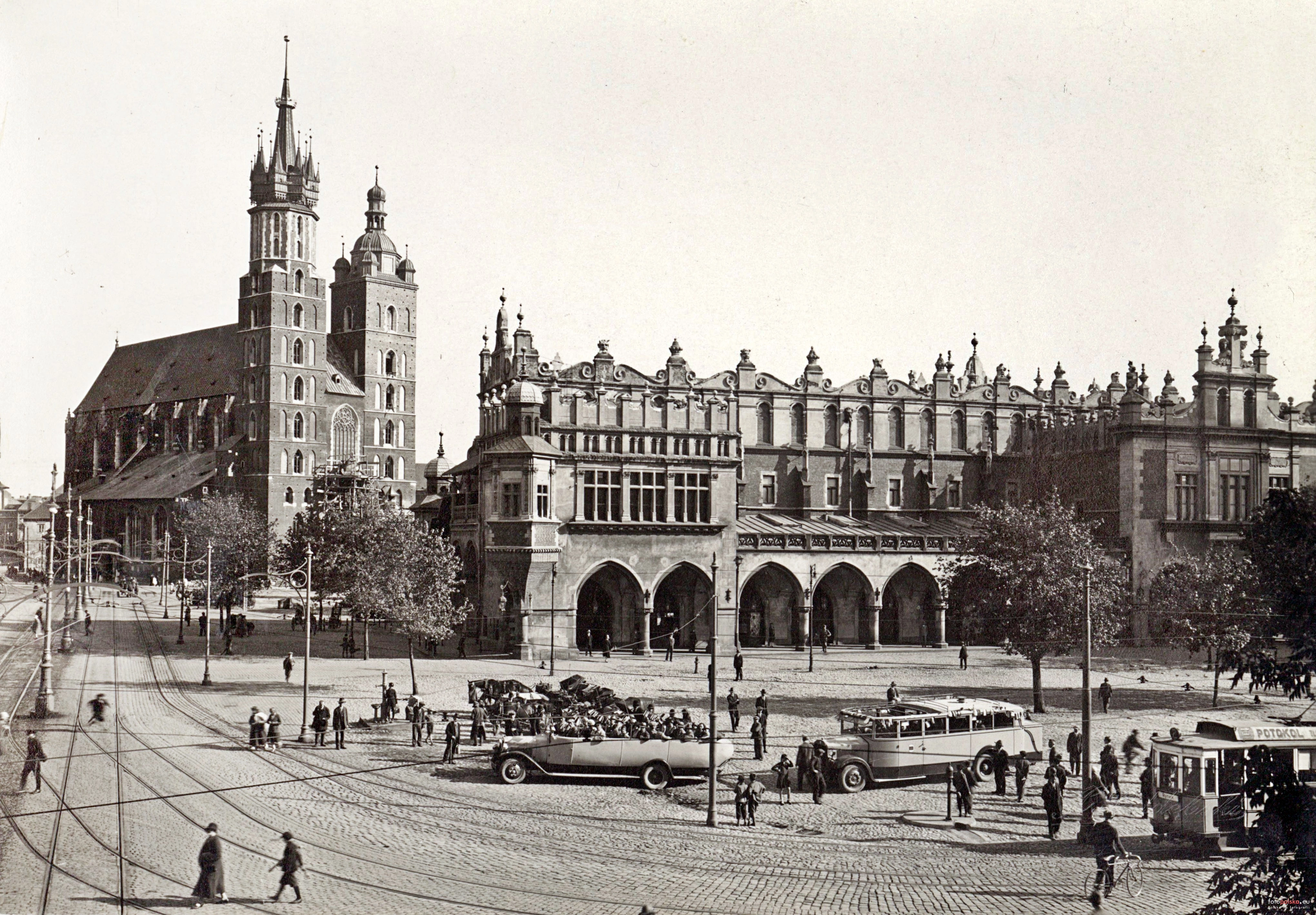 Lata 1930-1935 , Fragment zabudowy Rynku Głównego. Widoczny Kościół Mariacki i Sukiennice.Skomentuj zdjęcie |