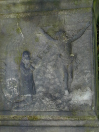 3 listopada 2001 , Płaskorzeźba na cokole. Resztki krzyża lub kapliczki. Nie potrafię ustalić dokładnego położenia.Skomentuj zdjęcie |