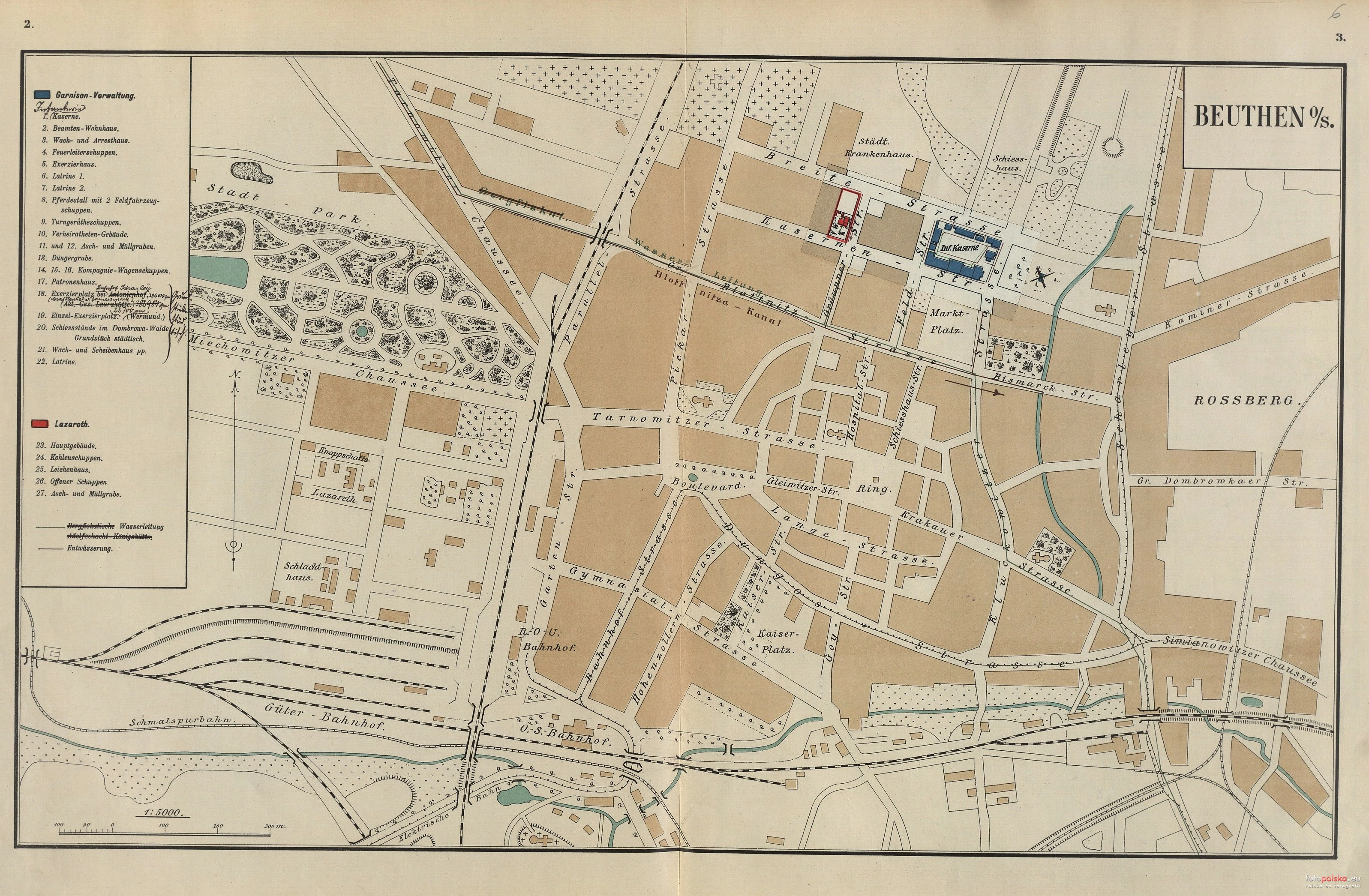 1900 , Plan Bytomia z naniesionymi obiektami militarnymi.Skomentuj zdjęcie |