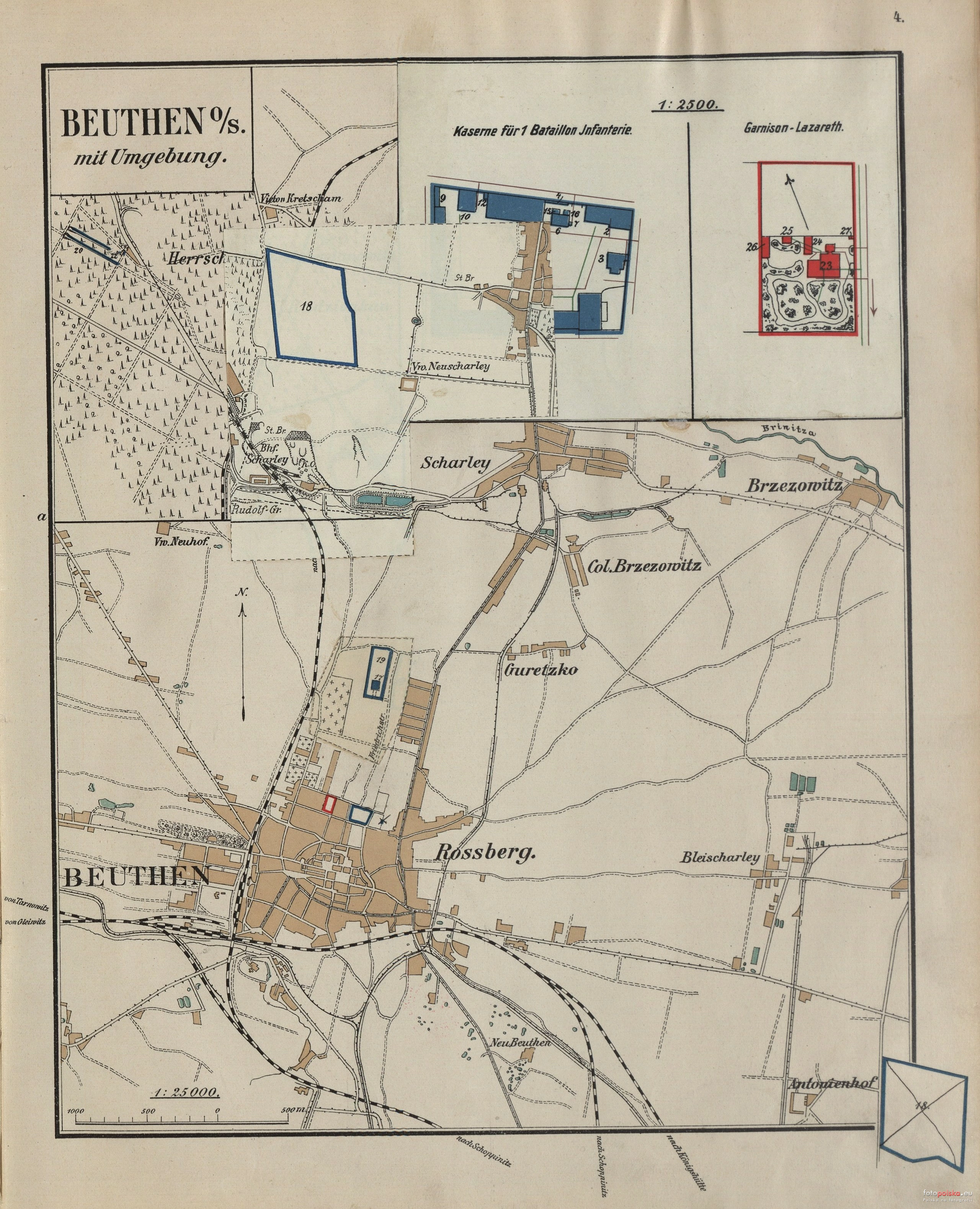 1900 , Plan Bytomia z naniesionymi obiektami militarnymi.Skomentuj zdjęcie |