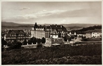 Lata 1925-1930 , Widok ze zbocza Wzgórza Partyzantów (niem. Fischerbergu), rejonu dzisiejszej ul. Aleksandra Fredry w Jeleniej Górze, w stronę gmachu I Liceum Ogólnokształcące im. Stefana Żeromskiego przy ul. Kochanowskiego. Na pierwszym planie powstający budynek nr 2 (ewentualnie nr 4?) przy ul. Tuwima, po prawej zabudowa ul. Uroczej. Po lewej budynek dyrekcji energetyki, obecnie siedziba Tauronu przy przy ul. Wojciecha Bogusławskiego 32.Skomentuj zdjęcie |