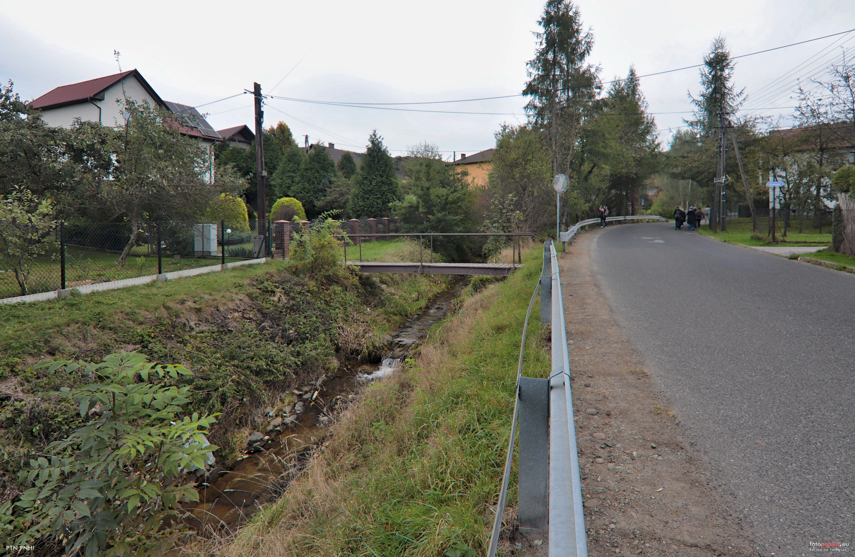 27 września 2024 , Perspektywa ulicy Świętej Katarzyny na wsokości domu przy Spacerowa 2, widok w kierunku południowym. Na drugim planie, potok Cięcinka.Skomentuj zdjęcie |