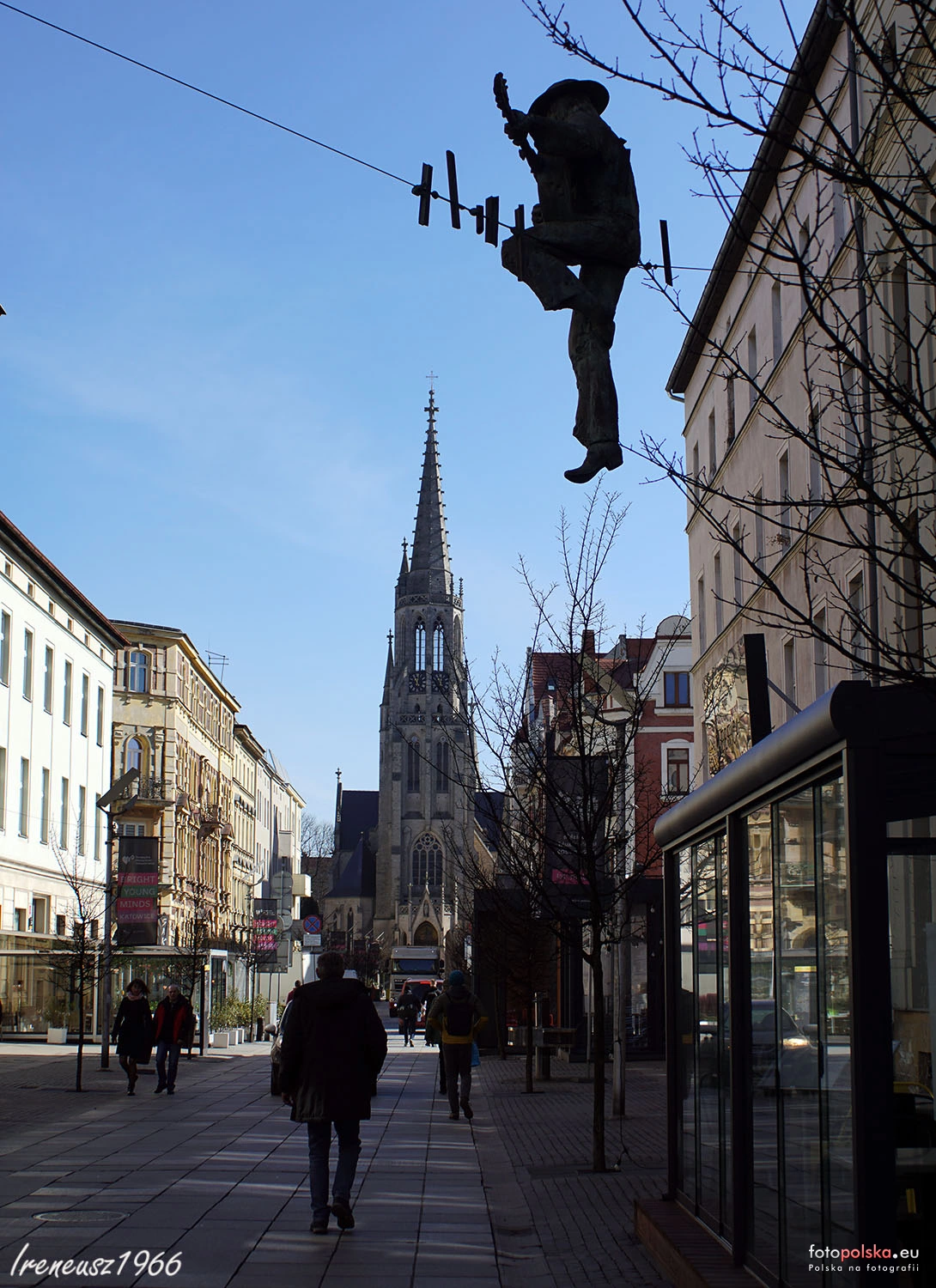 1 pobranie 183 odsłony 6 średnia ocen Poprzednie i następne zdjęcia ireneusz1966 Obiekty widoczne na zdjęciu ul. Mariacka więcej zdjęć (744) Dawniej: Holtze Strasse Ulica Mariacka została zabudowana w drugiej połowie XIX wieku według planu Nepilly'ego z 1875 (blok zamknięty ulic na wschód od Rynku). W 1876 ulicy nadano nazwę Richard Holtzestraße na cześć, obchodzącego wtedy dwudziestopięciolecie pracy jako lekarz, Richarda Holtzego − przewodniczącego ówczesnej Rady Miejskiej Katowic. Nazwa ta obowiązywała do 1922, oraz w latach niemieckiej okupacji Polski (1939−1945). Pod koniec XIX wieku przy ulicy działała restauracja Kasulke[7]. 27 stycznia 1901 w domu przy Holtzestraße 18 urodził się Willy Fritsch − jedna z najważniejszych gwiazd dawnego kina niemieckiego. Przed I wojną światową pod numerem 4−6 założono hotel Savoy; istniał do 1939; w okresie międzywojennym należał do A. Czaplickiego. W restauracji hotelu dnia 20 czerwca 1922 na uroczystym śniadaniu spotkali się Wojciech Korfanty i Józef Rymer ze Stanisławem Szeptyckim. W dwudziestoleciu międzywojennycm przy ulicy swoją siedzibę miały: Bank Śląski - Banque de Silésie SA (oddział, pod numerem 24), hotel Europejski (wzniesiony w latach 1930−1931 przy ul. Mariackiej 15), restauracja Kessel Juliusza Grundmanna (pod numerem 27), restauracja Józefa Adamaszka (pod numerem 24), cukiernia Astoria Walentego Rybki (ul. Mariacka 1), oddział towarzystwa ubezpieczeniowego Kotwica (pod numerem 3). Około 1926 pod numerem 2 działalność prowadził Bank Dewizowy, pod numerem 12 − Górnośląski Bank Związkowy, pod numerem 17 − Ogólna Spółka Rewizyjna i Powiernicza Vera. Przed II wojną światową przy ul. Mariackiej 5 założono Dom Techniczno-Handlowy Industria Ludwika Żmigroda. W latach 1925−1926 pod numerem 13 znajdował się konsulat Brazylii i redakcja oddziału Ilustrowanego Kuriera Codziennego, pod numerem 14 − biuro "Polskiego Kolejarza Górnośląskiego". Na rogu ul. Mariackiej, obok Astorii, zlokalizowany był początkowy przystanek linii atobusowej Katowice −Sosnowiec, uruchomionej we wrześniu 1925. W dwudziestoleciu międzywojennym ulica Mariacka znana była z dużej ilości pracujących tu prostytutek, w szczególności po zlokalizowaniu na rogu z ul. Stanisława Hotelu Europejskiego, gdzie często wyczekiwały na klientów. Kwartał ulic: św. Jana, Dworcowa, Mariacka, Andrzeja Mielęckiego, Stanisława i Starowiejska w zamyśle władz Katowic ma się stać tzw. "małym rynkiem". Pierwszym krokiem była organizacja konkursu na opracowanie koncepcji programowo-przestrzennej, urbanistyczno-architektonicznej zagospodarowania ulic św. Jana, Dworcowej, Mariackiej oraz Andrzeja Mielęckiego, Stanisława i Starowiejskiej w 2005, który wygrało konsorcjum Autorska Pracownia Architektury Kuryłowicz & Associates i Biuro Autorskie "A i R" Jurkowscy Architekci, min. za "dwustronne obsadzenie drzewami ulicy Mariackiej odtwarza jej pierwotny charakter alei ulicznej zamkniętej widokiem kościoła NMP". Remont ulicy Mariackiej przeprowadzono w 2008; koszt przebudowy wyniósł około 12 milionów złotych. W dniach 4−26 lipca 2009 na ulicy Mariackiej odbył się cykl imprez Letnie Granie na Mariackiej. 22 września 2009[21] rozpoczął działalność portal internetowy, poświęcony ulicy − Mariacka.eu. Znajdujące się na tej ulicy nowoczesne ławki i stół Elipse, projektu Macieja Rutkowskiego, zostały nagrodzone w konkursie Śląska Rzecz (2009). Dnia 6 września 2010 odbyła się impreza Mariacka.OPEN[22], w dniach 8−17 września 2010 na deptaku znajdował się "Jarmark Katowicki", promujący miasto i sam deptak; 18 i 19 września 2010 na ulicy Mariackiej odbyły się koncerty bluesowe, a 21 września 2010 otwaro wystawę "Katowickie Synagogi", prezentująca materiały archiwalne dotyczące katowickiej synagogi, pochodzące z archiwum Urzędu Miasta Katowice. Od 2009 na ulicy Mariackiej cyklicznie odbywa się szereg imprez plenerowych i koncertów oraz wydarzeń kulturalnych. Pod koniec 2010 kamienicę na rogu ul. Francuskiej i ul. Mariackiej wyburzono. 27 marca 2011 na ul. Mariackiej odbył się koncert "Solidarni z Białorusią", zorganizowany przez Stowarzyszenie Inicjatywa Wolna Białoruś. Pod koniec kwietnia 2011 na deptaku zasadzono trzydzieści ozdobnych drzewek wiśni piłkowanej rozpoczęto także naprawę odcinka od skrzyżowania z ul. Francuską do Kościoła Mariackiego (koszt naprawy szacowany jest na milion złotych, trwała do czerwca 2011; w 2010 ta część deptaku została uszkodzona przez betoniarkę) |