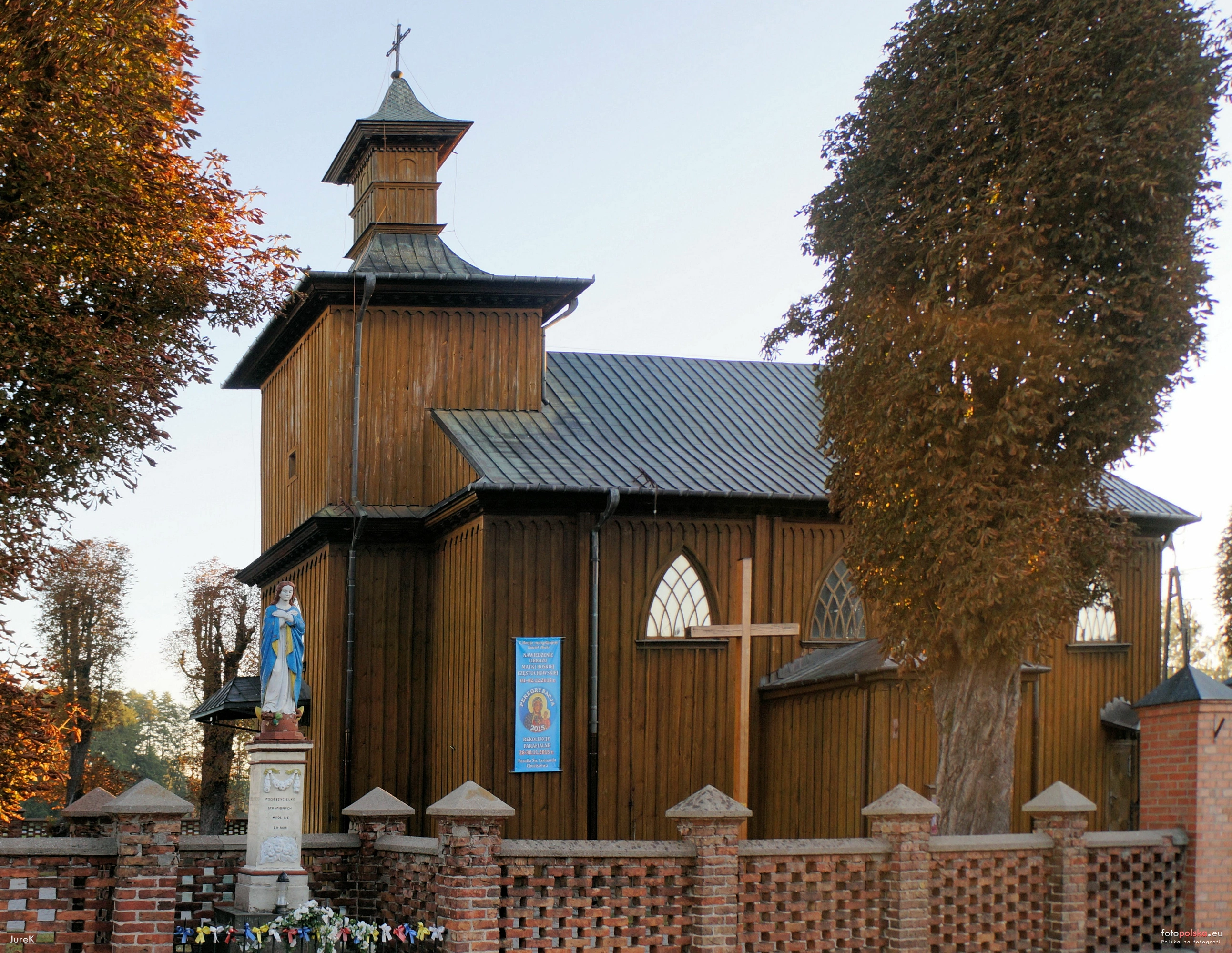 0 pobrań 552 odsłony 6 średnia ocen Poprzednie i następne zdjęcia JureK Obiekty widoczne na zdjęciu Kościół św. Leonarda więcej zdjęć (17) Zbudowano: 1830-1835 Zabytek: A-69 z 17.03.1978 Kościół pw. św. Leonarda w Chociszewie – rzymskokatolicki kościół parafialny znajdujący się we wsi Chociszewo, w województwie mazowieckim. Należy do dekanatu zakroczymskiego diecezji płockiej. Historia Kościół w Chociszewie jest czwartą świątynią wzniesioną w tym miejscu. Pierwszy kościół powstał wraz z erygowaniem parafii w 1452 r. Pierwotny budynek doczekał XVI wieku, kiedy to zastąpiono go nowym kościołem. Kolejny kościół został wzniesiony w 1740 r. z fundacji Władysława Łaźniewskiego, cześnika zakroczymskiego i przetrwał do 1830 r. Obecny budynek zbudowany został w latach 1830 – 35 z fundacji Szczepana Miszewskiego. W 1878 r. remontowany i przebudowany kosztem właściciela wsi Józefata Zawidzkiego. Ostatni remont świątyni został przeprowadzony w latach 90 XIX w. pod kierunkiem ks. Stefana Kocota i jego następcy, ks. Zdzisława Ulatowskieo podczas którego, świątyni nadano neogotycki charakter. Architektura i wyposażenie Jest to budowla drewniana, jednonawowa, orientowana, konstrukcji zrębowej. Od wschodu wydzielone jest prezbiterium mniejsze od nawy, zamknięte prostokątnie po którego bokach znajdują się dwa pomieszczenia z lożami w górnych kondygnacjach. Od południa do nawy dobudowana jest kruchta boczna. Od frontu dostawiona jest dwukondygnacyjna wieża konstrukcji słupowej, zwieńczona dachem namiotowym i czworobocznym hełmem z krzyżem. Budowlę przykrywa blaszany dach jednokalenicowy z kwadratową wieżyczką na sygnaturkę zwieńczoną hełmem z latarnią. Okna zamknięte ostrołukowo. Wnętrze przykrywa strop płaski, wspólny nad prezbiterium i nawą. Kościół otacza neogotycki ażurowy murek. Wnętrze kościoła charakteryzuje styl neogotycki. Styl ten widać wyraźnie w kształtach okien i snycerskich elementach we wnętrzu, takich jak oszalowanie w formie arkadek, ażurowe wykończenia i neogotyckie malowidła. Na wyposażeniu świątyni znajduje się późnorenesansowy ołtarz z XVII wieku sprowadzony z Włoch. W ołtarzu mieści się obraz Matki Boskiej Częstochowskiej, pochodzący najprawdopodobniej z XVII stulecia, przysłaniany obrazem św. Katarzyny. Po obu stronach ołtarza umieszczone są figury świętych Piotra i Pawła. Są także dwa ołtarze boczne pochodzące z XIX w. W kruchtach znajdują się cenne późnogotyckie krucyfiksy z 1 poł. XVI w. oraz tablice epitafijne. Z innych elementów wyposażenia świątyni na uwagę zasługują: ozdobna belka tęczowa z krucyfiksem z pierwszej poł. XVII w., neobarokowa chrzcielnica z 1 poł. XIX w. czy oryginalne tabernakulum w kształcie snopu zboża. |